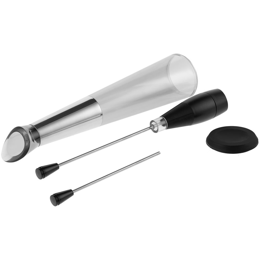 диаметр 6,5 см; высота 36,6 см; длина насадки для бутылки 24 см, для бокала - 16 см; упаковка: 7x7x37,5/41 см