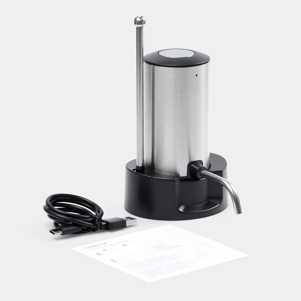 - В комплекте: аэратор-дозатор, съемная подставка, кабель для зарядки, инструкция, фирменная коробка.