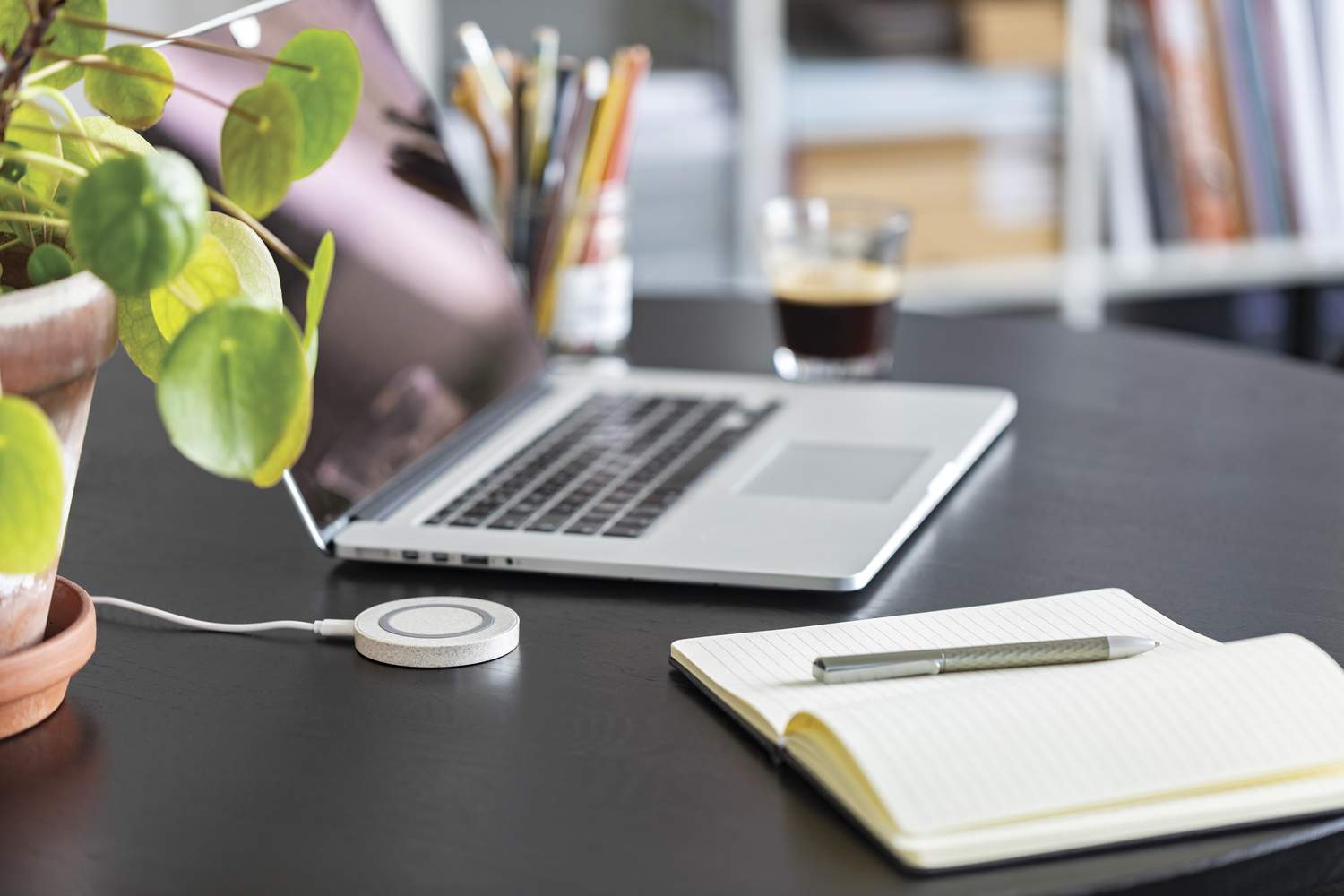 Док-станция сделана из пшеничного волокна (30%), смешанного с пластиком ABS. Идеально подойдет для всех современных смартфонов, поддерживающих функцию беспроводной зарядки. Специальная силиконовая вставка предотвращает скольжение телефона. В режиме зарядки загорается светодиодный индикатор. Док-станция совместима со всеми устройствами с поддержкой стандарта QI (Android последнего поколения, IPhone 8 и выше). Вход: 5 В / 1,5 А. Беспроводной выход: 5 В / 1 А, 5 Вт. В комплект входит кабель micro USB из TPE длиной 50 см (без ПВХ).