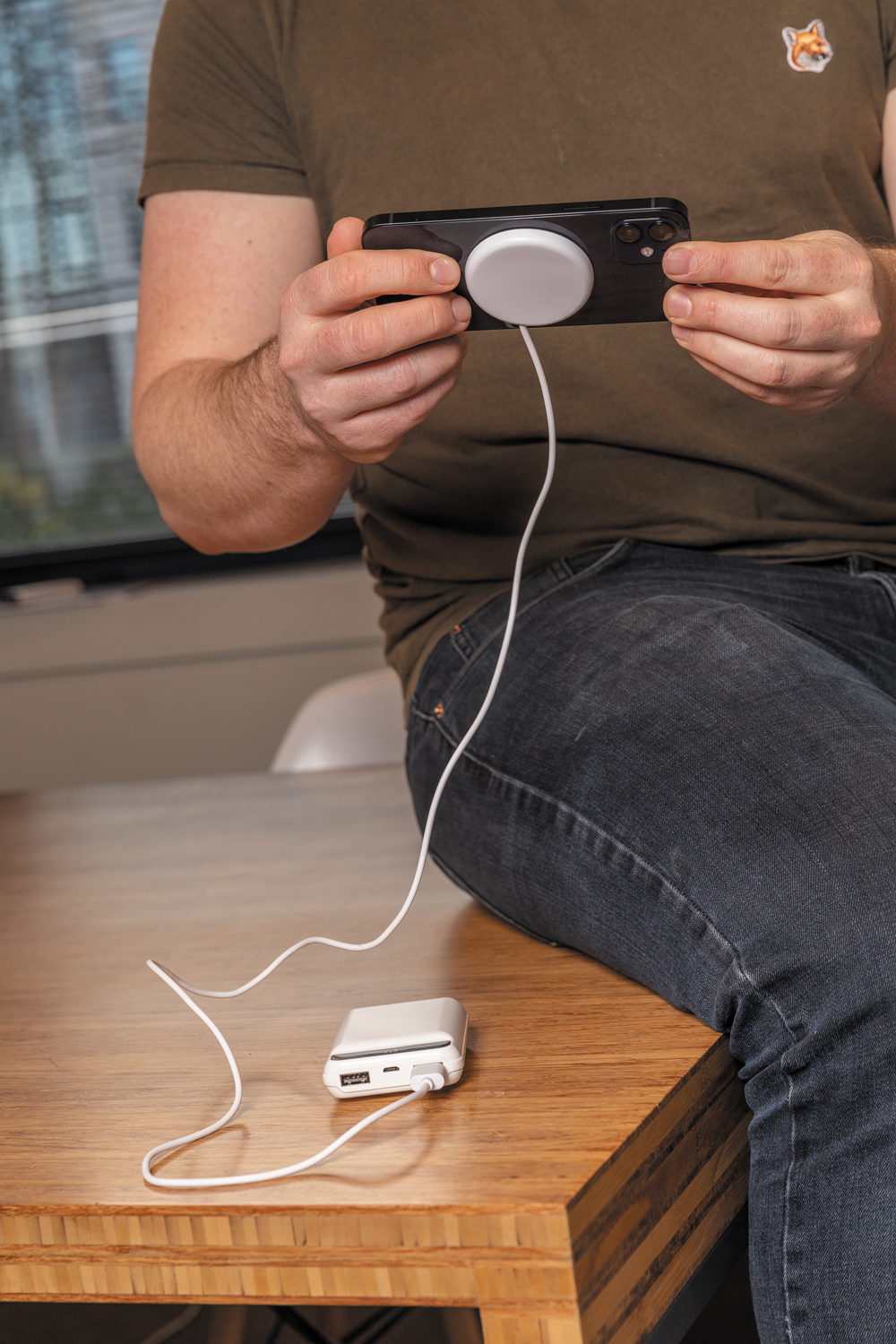 Разместите магнитное устройство из материала ABS на задней части вашего iPhone 12, чтобы зарядить телефон. Магниты обеспечат надежное сцепление с панелью смартфона. Функция беспроводной зарядки 5 Вт совместима со всеми устройствами с поддержкой QI (iPhone 8 и выше, а также телефонами на Android), поэтому вы можете использовать эту модель как обычный девайс для зарядки без проводов. В комплект входит 100-сантиметровый кабель micro USB из материала TPE (без ПВХ). Вход постоянного тока: 5 В / 1,5 А; Выход 5 В / 1 А (5 Вт). Внутри — 11 термостойких магнитов N52H для надежного крепления к смартфону.