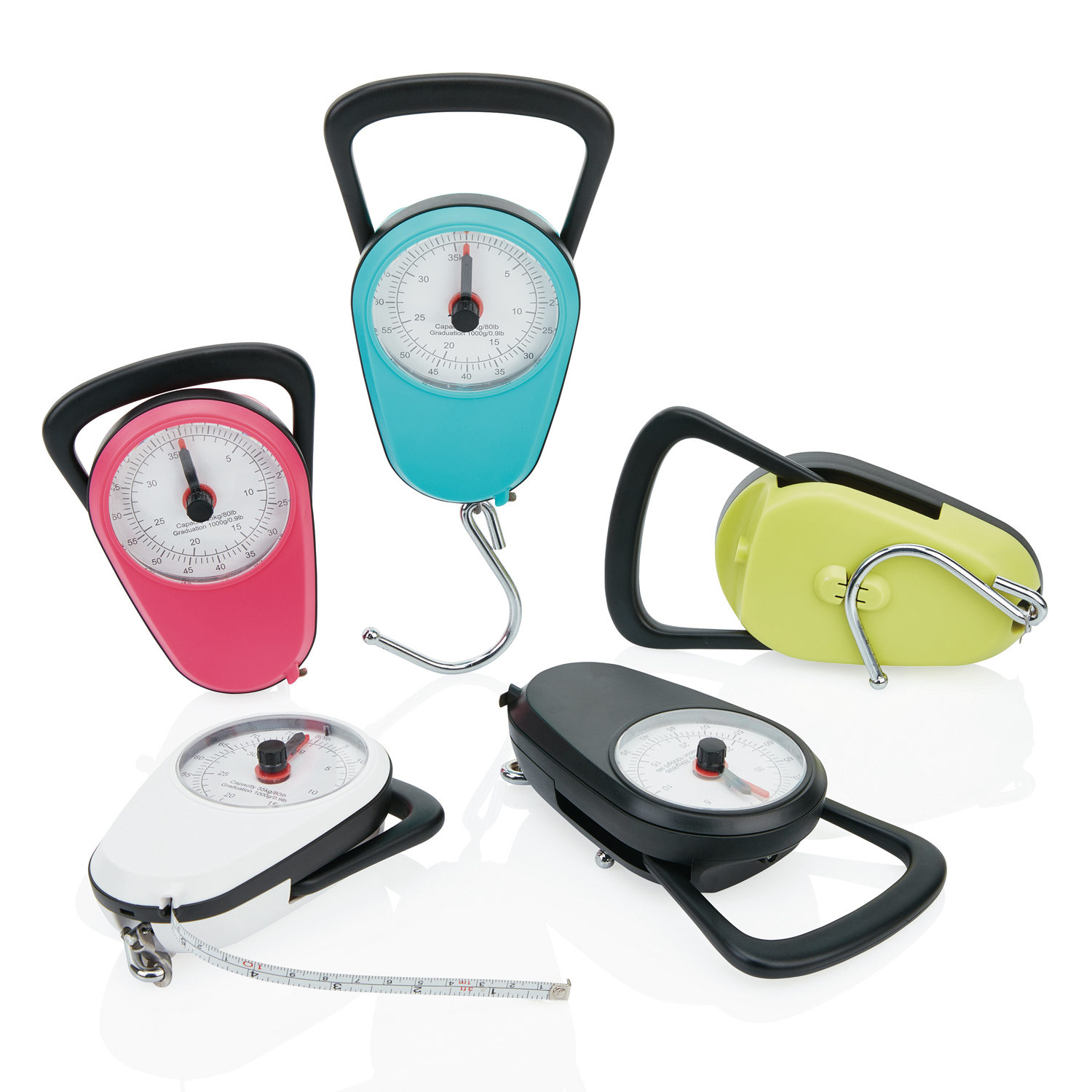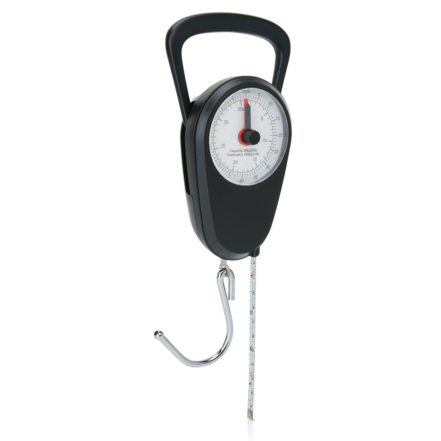 Весы для багажа в корпусе из ABS-пластика с металлическим крюком идеально подходят для путешествий. Максимальный вес 80 lb или 35 kg. В корпус весов встроена рулетка с измерительной шкалой в дюймах и сантиметрах.