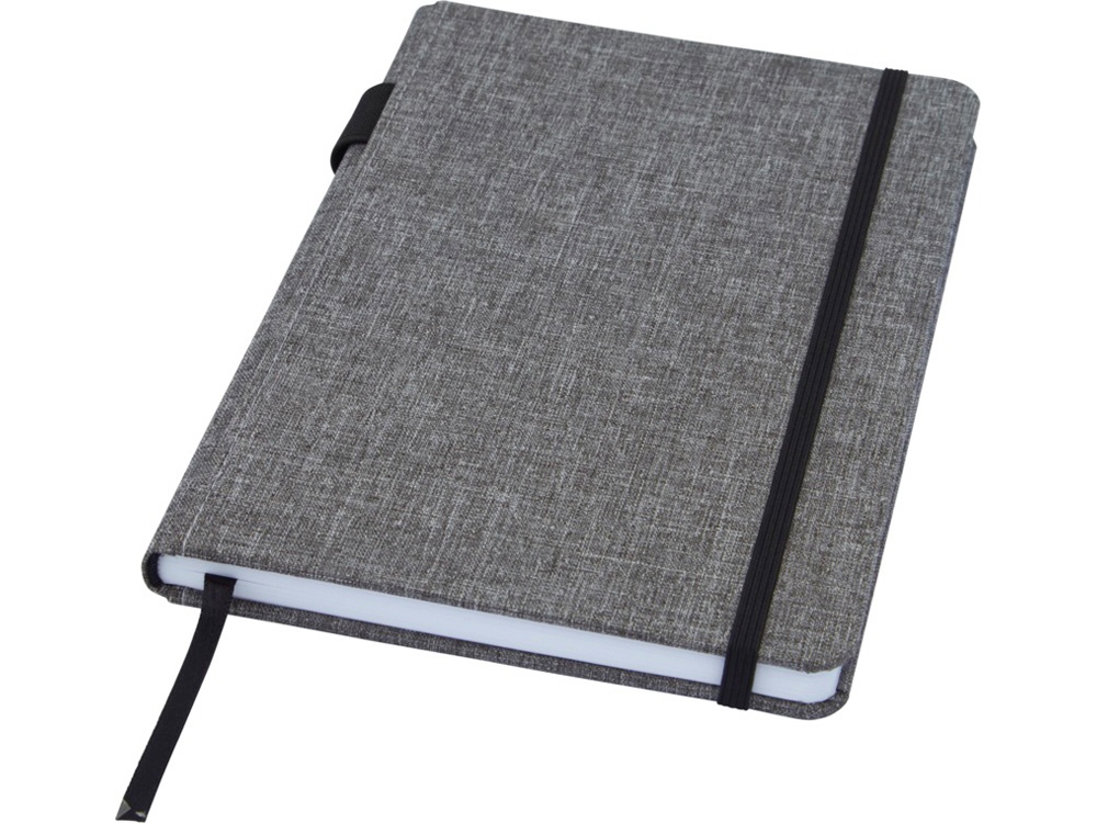 Блокнот формата А5 с отделкой из переработанного ПЭТ. Содержит 96 листов в линию плотностью 70 г/м², изготовленных из переработанной бумаги, с петлей для ручки и лентой-закладкой. В упаковке из картона. Recycled Plastic, Переработанная бумага. #?0:>2:0: FSC Recycled 100% P5.1 CU-COC-877277. FSC Recycled 100% P7.1 CU-COC-877277.