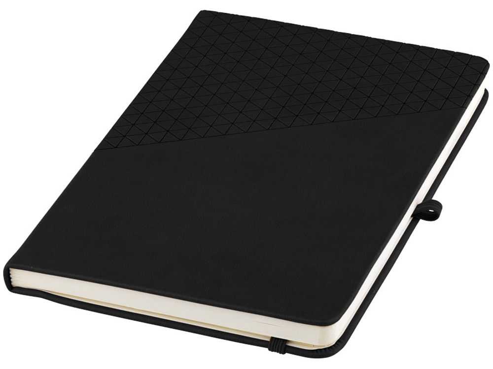 Блокнот А5 Theta. Блокнот А5 в приятной на ощупь обложке в стильном геометрическом дизайне. 80 листов линованной бумаги 80г/м2, закладка - лента, эластичная застежка и петелька для ручки. Кожзаменитель. Тиснение (Блинт) на данный товар осуществляется бесплатно. Оплачивается только настройка оборудования в размере 8700 рублей на весь тираж.