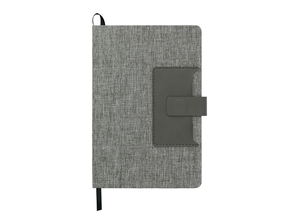 Стильный блокнот с твердой обложкой, обтянутой меланжевой тканью. Отделение для визиток из искусственной кожи и магнитным клапаном, под которым также можно закрепить свою любимую ручку. Тиснение (Блинт) на данный товар осуществляется бесплатно. Оплачивается только настройка оборудования в размере 8700 рублей на весь тираж.