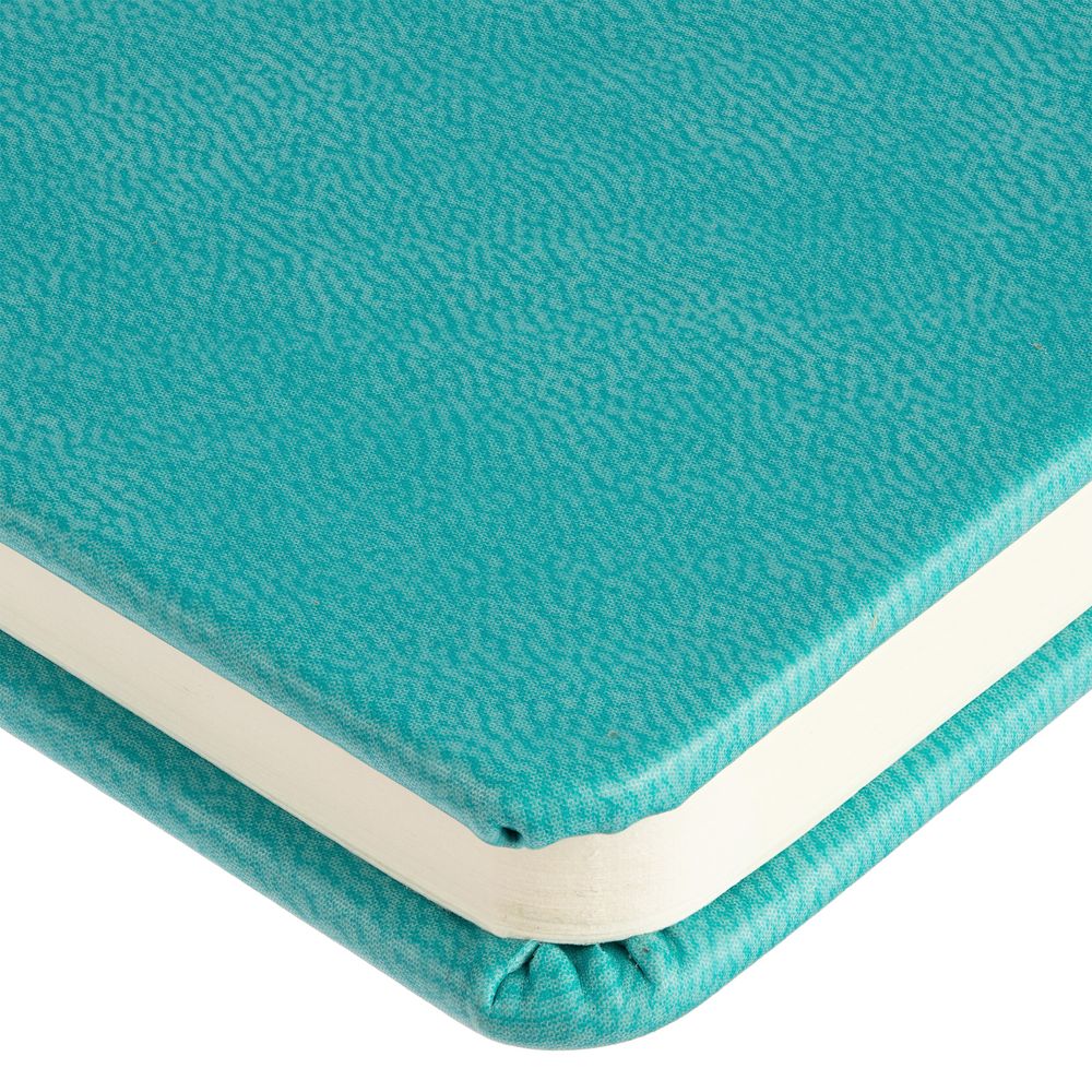Твердая обложка из материала Latte, бирюзовый, ляссе в цвет обложки.