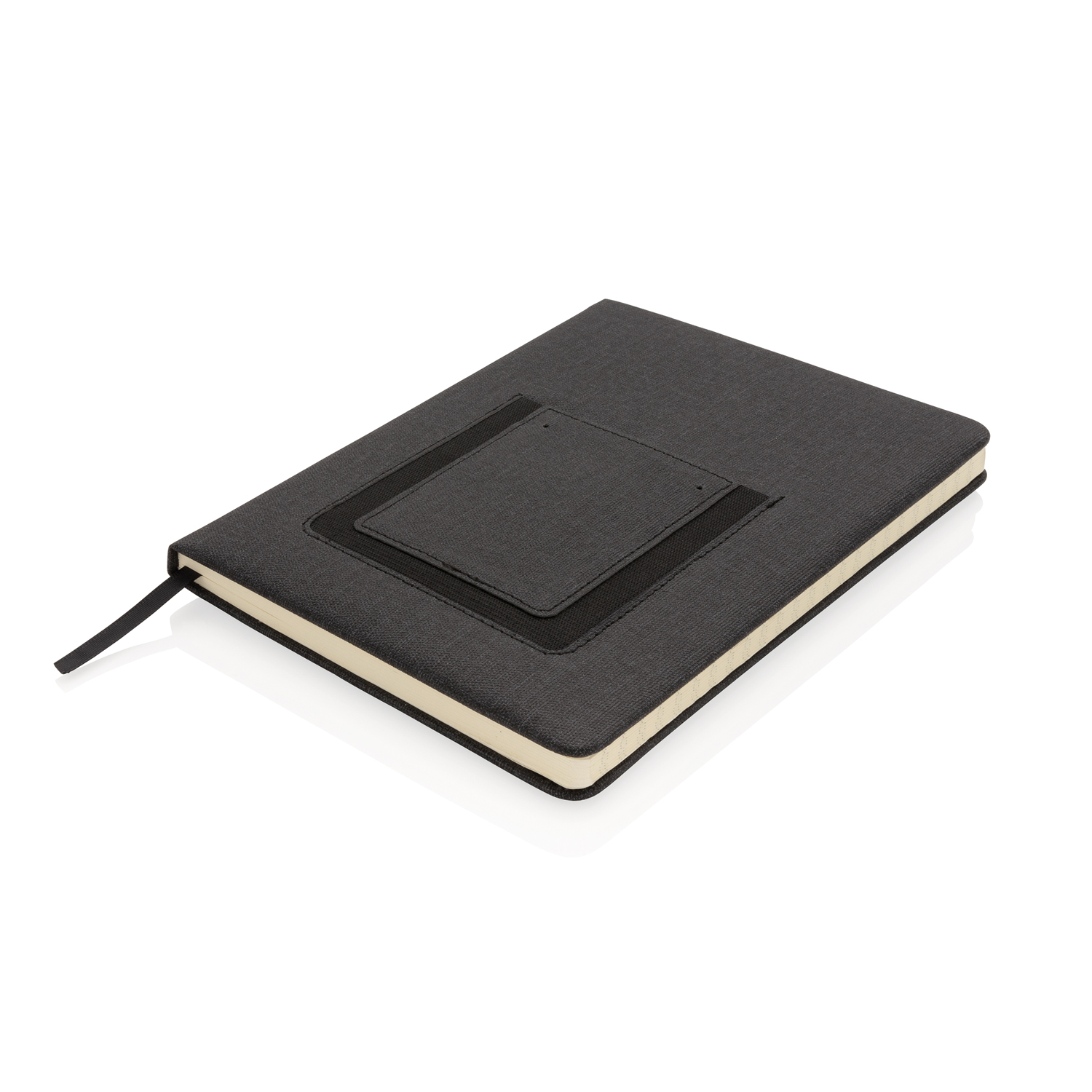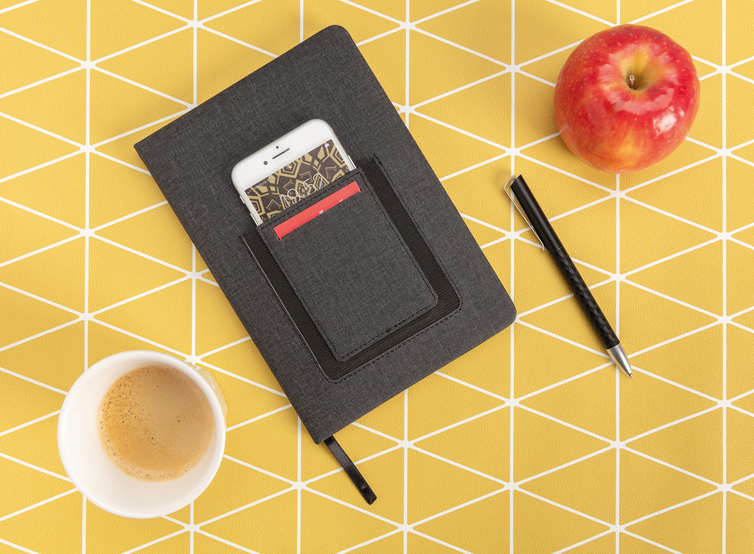 Удобный блокнот Deluxe формата А5 с кармашком для телефона, чехлом для карты и лентой-закладкой. 80 листов/160 страниц плотностью 78 г/ м2. Листы кремового оттенка.