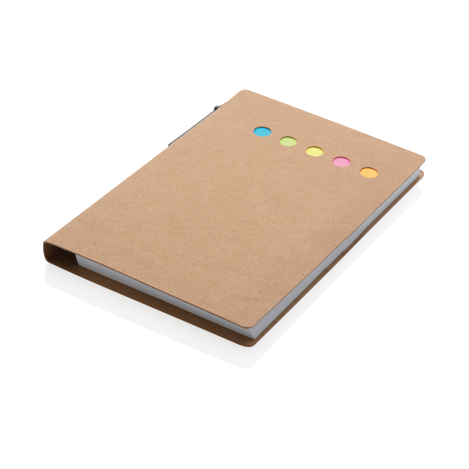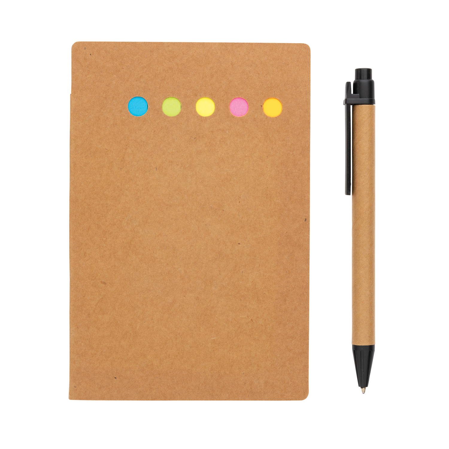 С этим компактным набором для заметок Kraft вы не забудете о важных делах. В комплект входят: плотная крафтовая обложка (350 г/м2), большой блокнот из 50 листов, средний блокнот из 25 листов с липким краем и маленькие закладки в 5 цветах (по 25 шт.), ручка с корпусом из переработанной бумаги и пластика ABS. Ручка заправлена синей пастой и способна прочертить линию до 800 м.