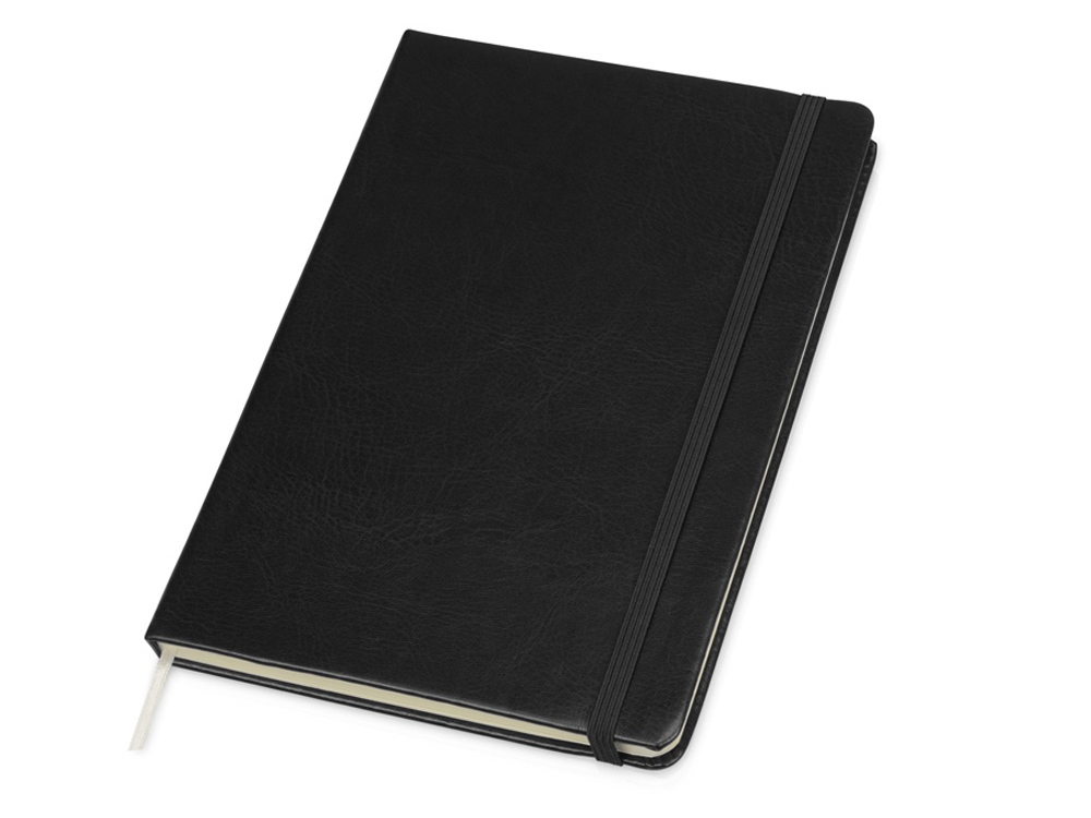 Линованный блокнот формата А5 с закладкой, эластичной застежкой и удобным карманом для карточек и записок.