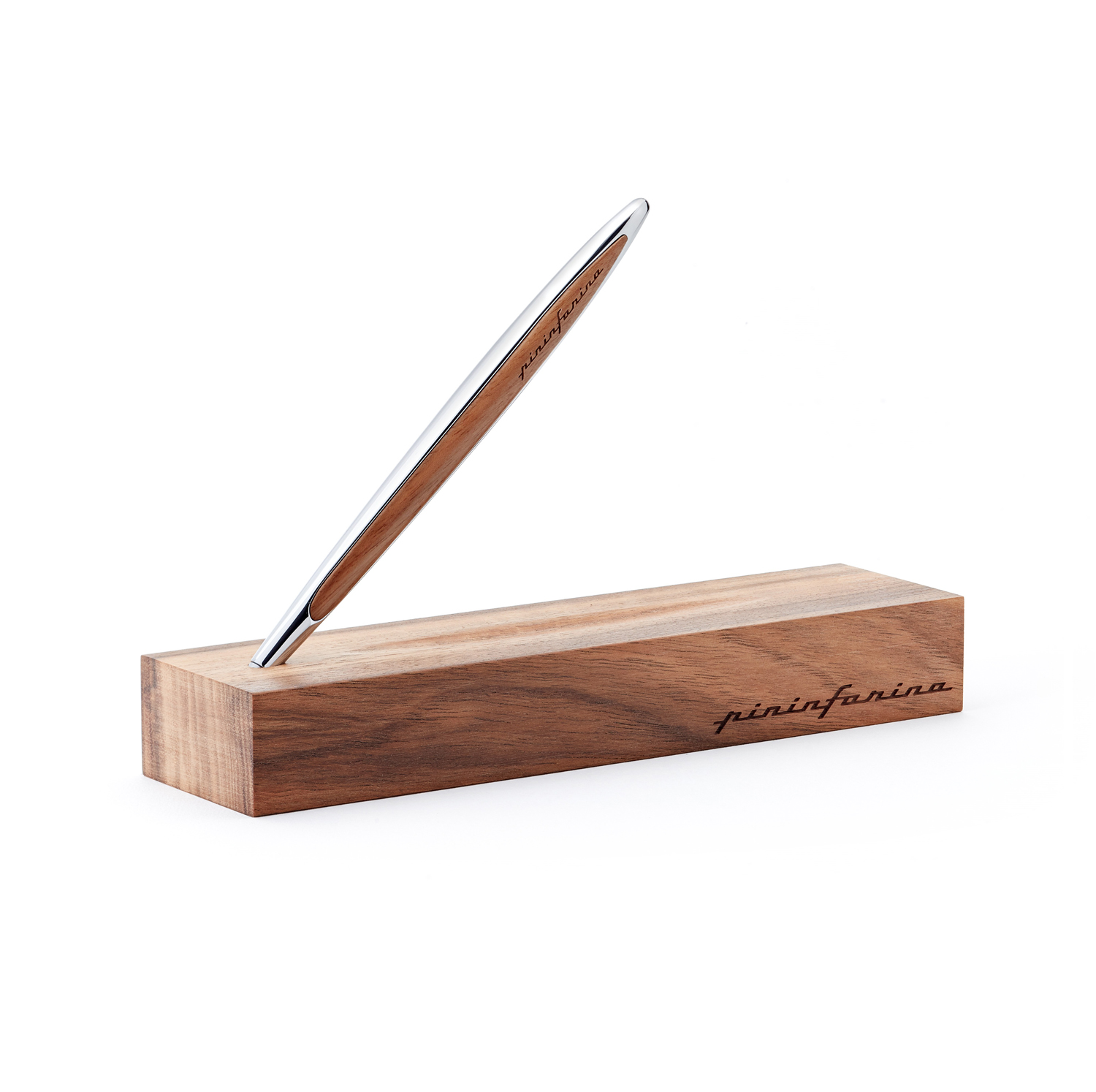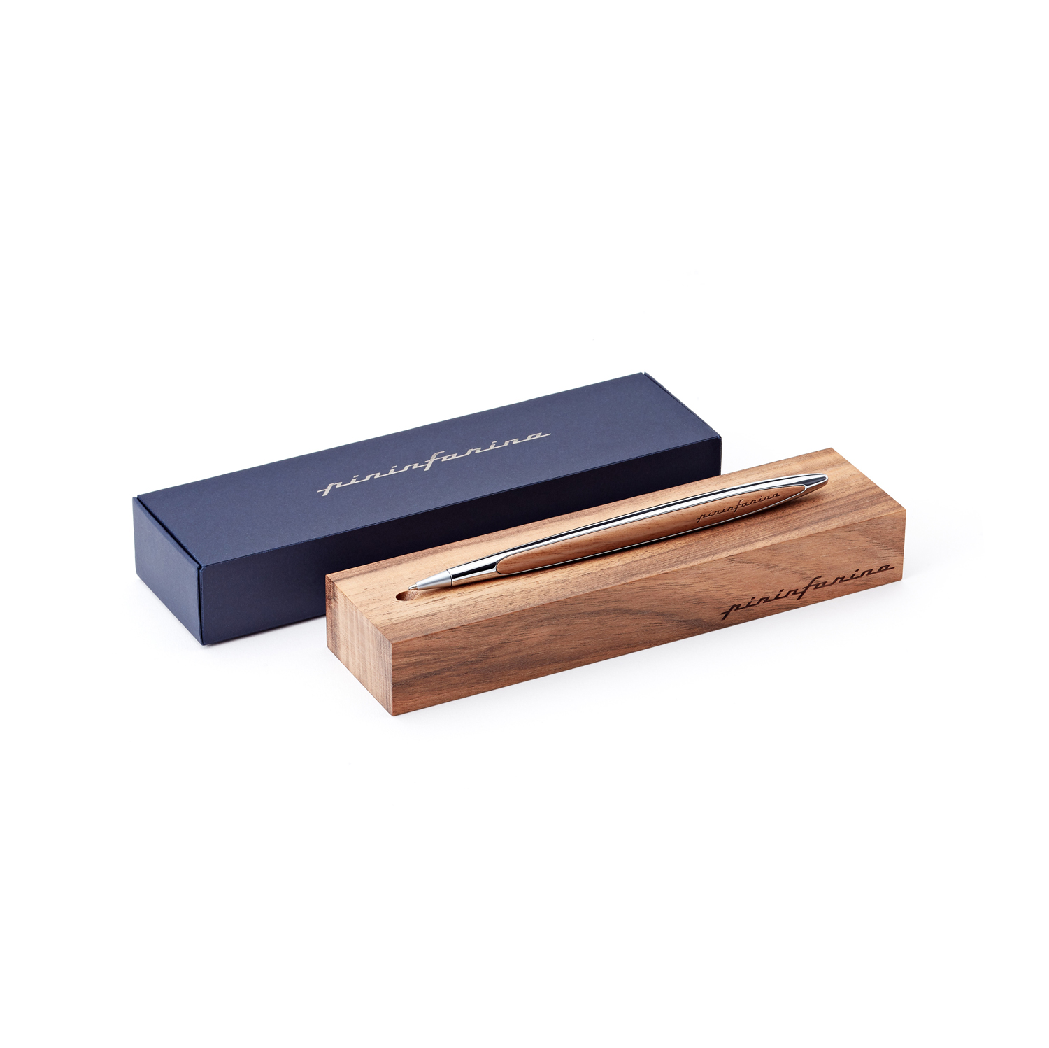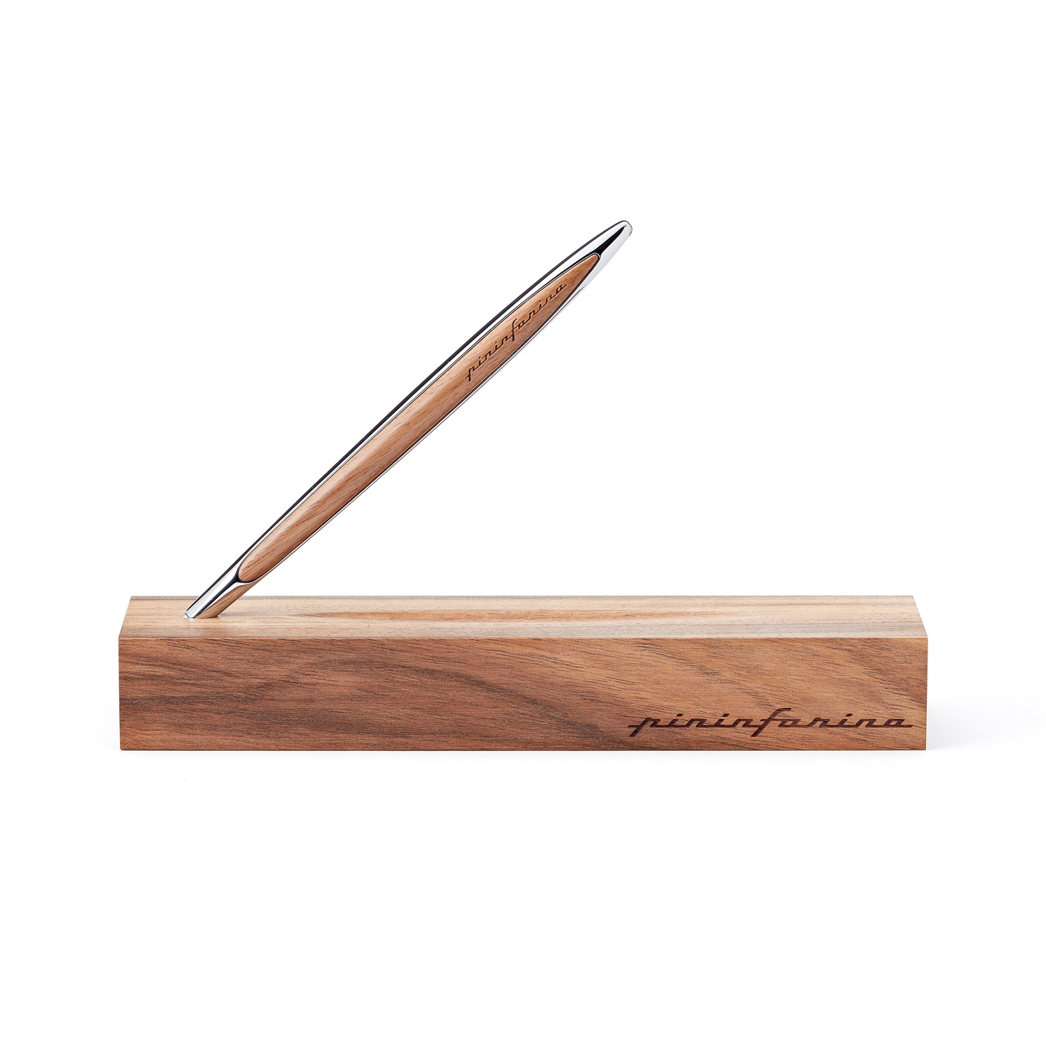 Флагманская ручка дизайнерского дома Pininfarina сочетает в себе роскошь и смелые дизайнерские решения. Pininfarina Cambiano - это объединение различных материалов, технологичность и элегантные линии. В ручке используется шариковый стержень CROSS® 8513 с синей пастой. Алюминиевый корпус отшлифован до блеска, в сочетании с деталями из дерева грецкого ореха - ручка выглядит элегантно и стильно. Вес ручки 39 гр, длина 16 см. Коробка выполнена из дерева грецкого ореха и одновременно является настольной подставкой для ручки.