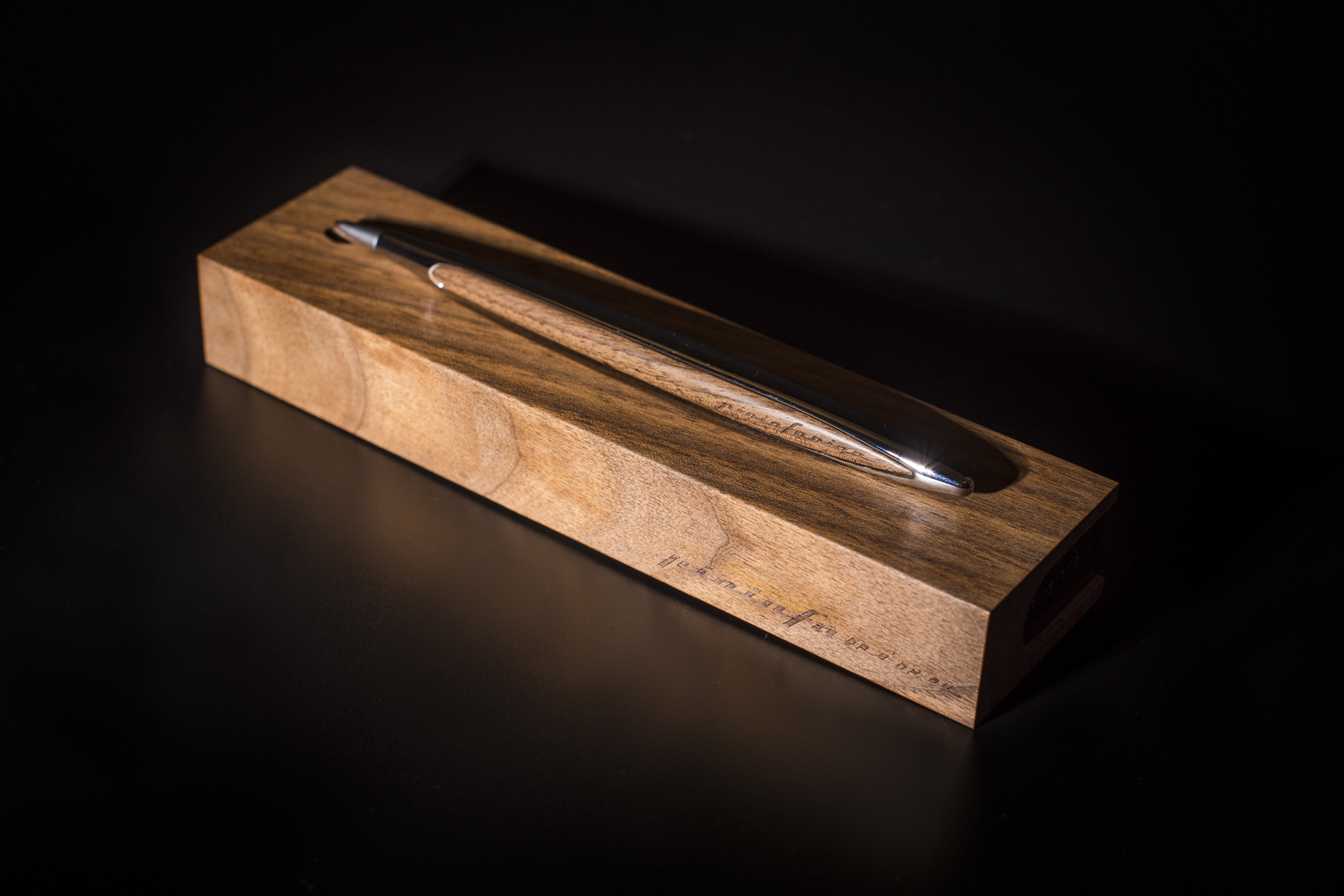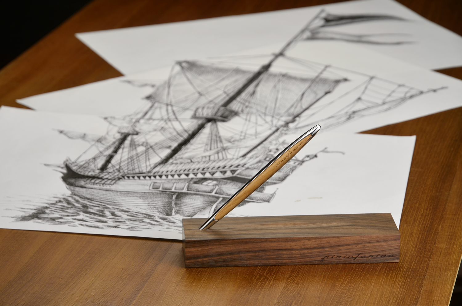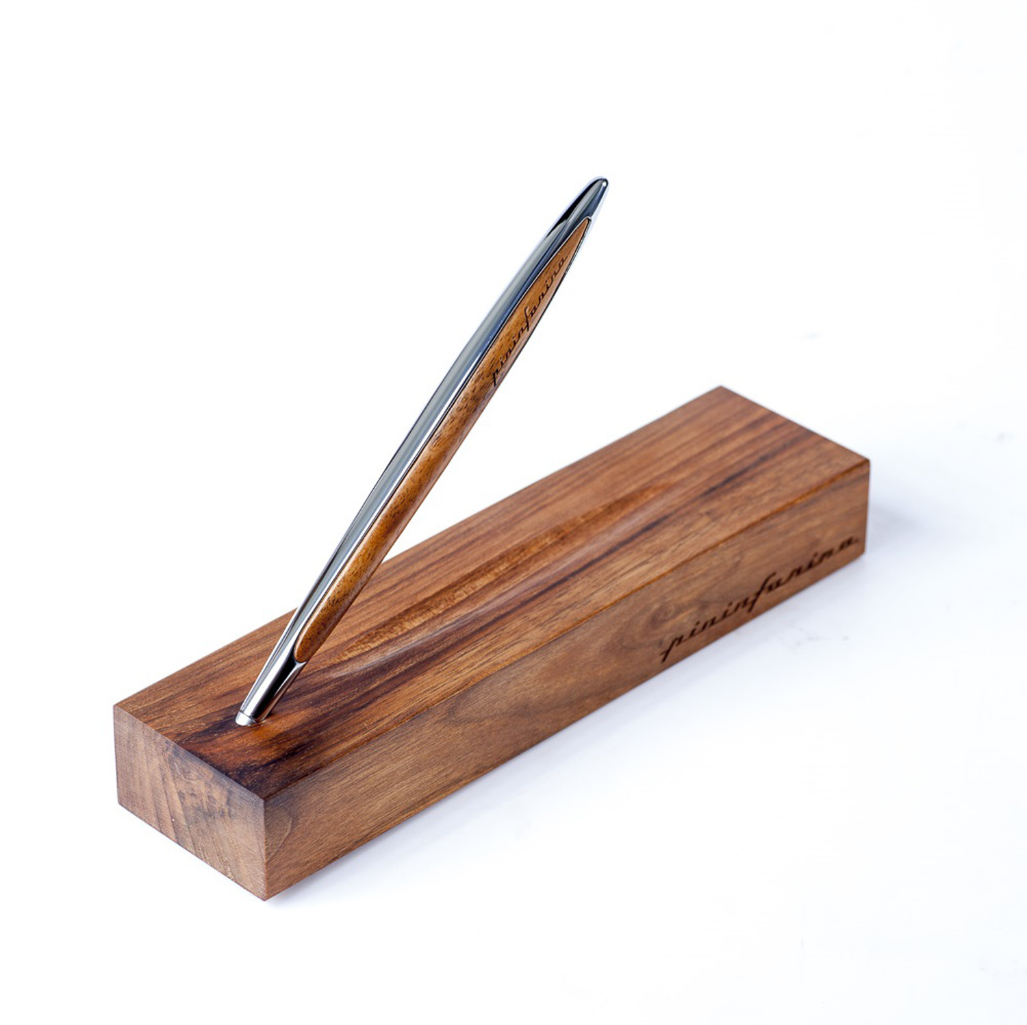 Флагманская ручка дизайнерского дома Pininfarina сочетает в себе роскошь и смелые дизайнерские решения. Pininfarina Cambiano - это объединение различных материалов, технологичность и элегантные линии. В ручке используется шариковый стержень CROSS® 8513 с синей пастой. Алюминиевый корпус отшлифован до блеска, в сочетании с деталями из дерева грецкого ореха - ручка выглядит элегантно и стильно. Вес ручки 39 гр, длина 16 см. Коробка выполнена из дерева грецкого ореха и одновременно является настольной подставкой для ручки.