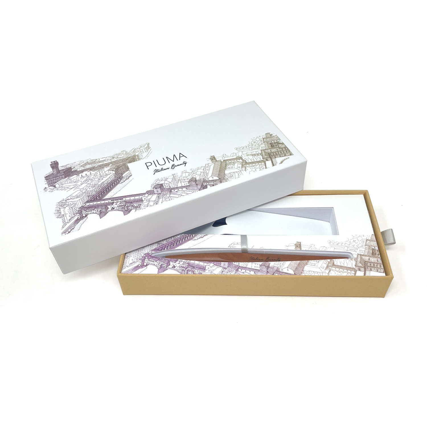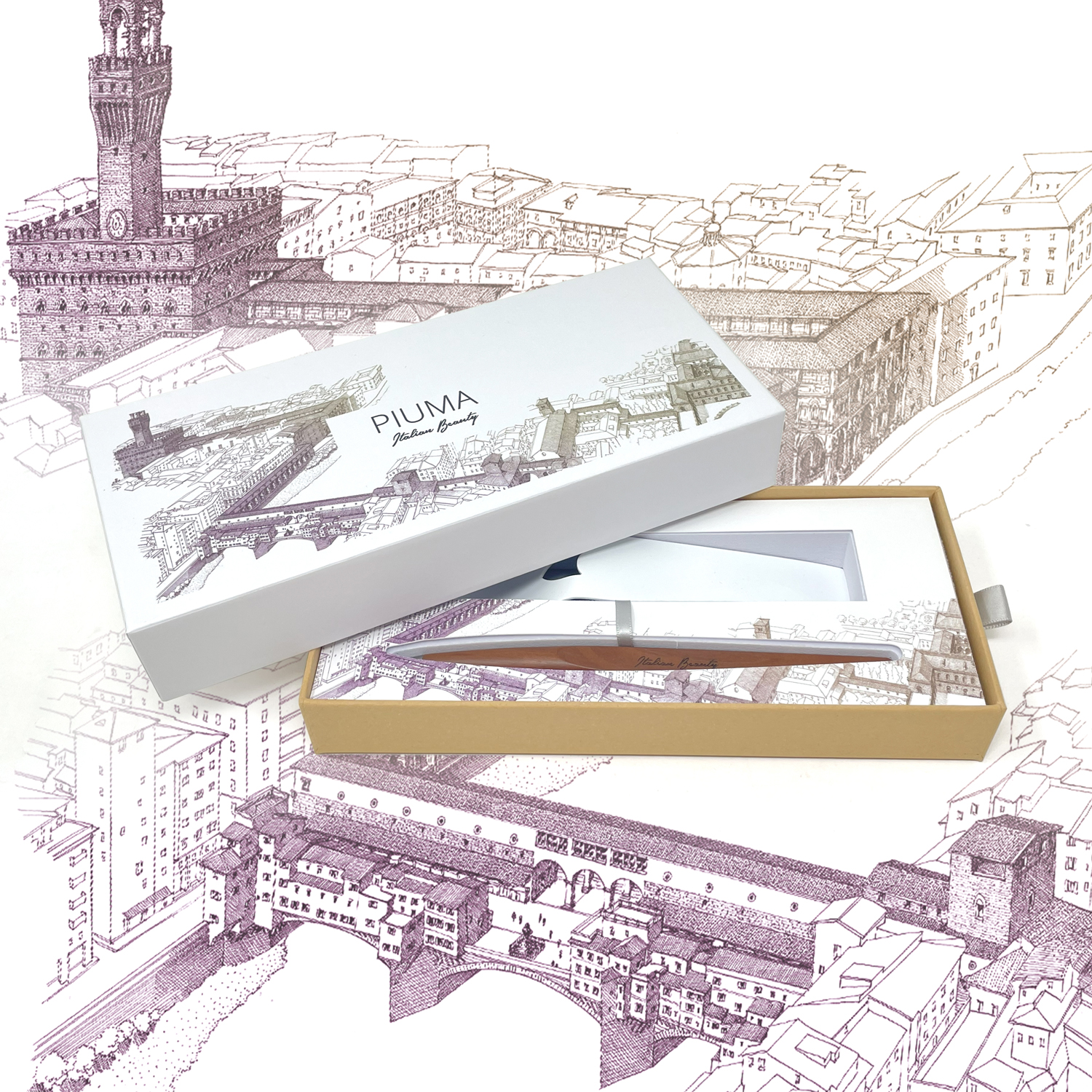 Шариковая ручка Pininfarina Piuma Флоренция из лимитированной коллекции дизайнеров Pininfarina в сотрудничестве с Francesco Corni Foundation, посвященной красоте Италии и представленной 8 городами. Франческо Корни - выдающийся дизайнер из Модены, посвятивший свою жизнь популяризации истории и архитектуры. Используя трехмерное перспективное видение, он изучает наиболее значимые здания каждого города, выбирает наилучшую точку обзора, чтобы подчеркнуть их особенности, и прорисовывает детали в древней технике калиграфии. Дополняет видение мастера умелое использование цветов, по одному для каждого города. Для Флоренции дизайнер выбрал центром композиции Corridoio Vasariano, идущий от Palazzo Vecchio до Palazzo Pitti, и фиолетовый цвет, в результате подарочная коробка c ручкой Pininfarina PIUMA становится произведением искусства. PIUMA - ручка динамической формы в виде гусиного пера. Дизайнеры вдохновлялись Кодексом о полете птиц мастера Леонардо да Винчи, целью которого было понять тайну полета и который хранится сейчас в Королевской библиотеке Турина. Piuma находится в постоянном равновесии со своим центром тяжести благодаря белому стальному пьедесталу. На ручке стильный логотип Italian Beauty, она полностью сделана из дерева груши. В ручке используется шариковый стержень Schmidt ® S635 (D1) с синей пастой. Набор упакован в белую подарочную коробку.
