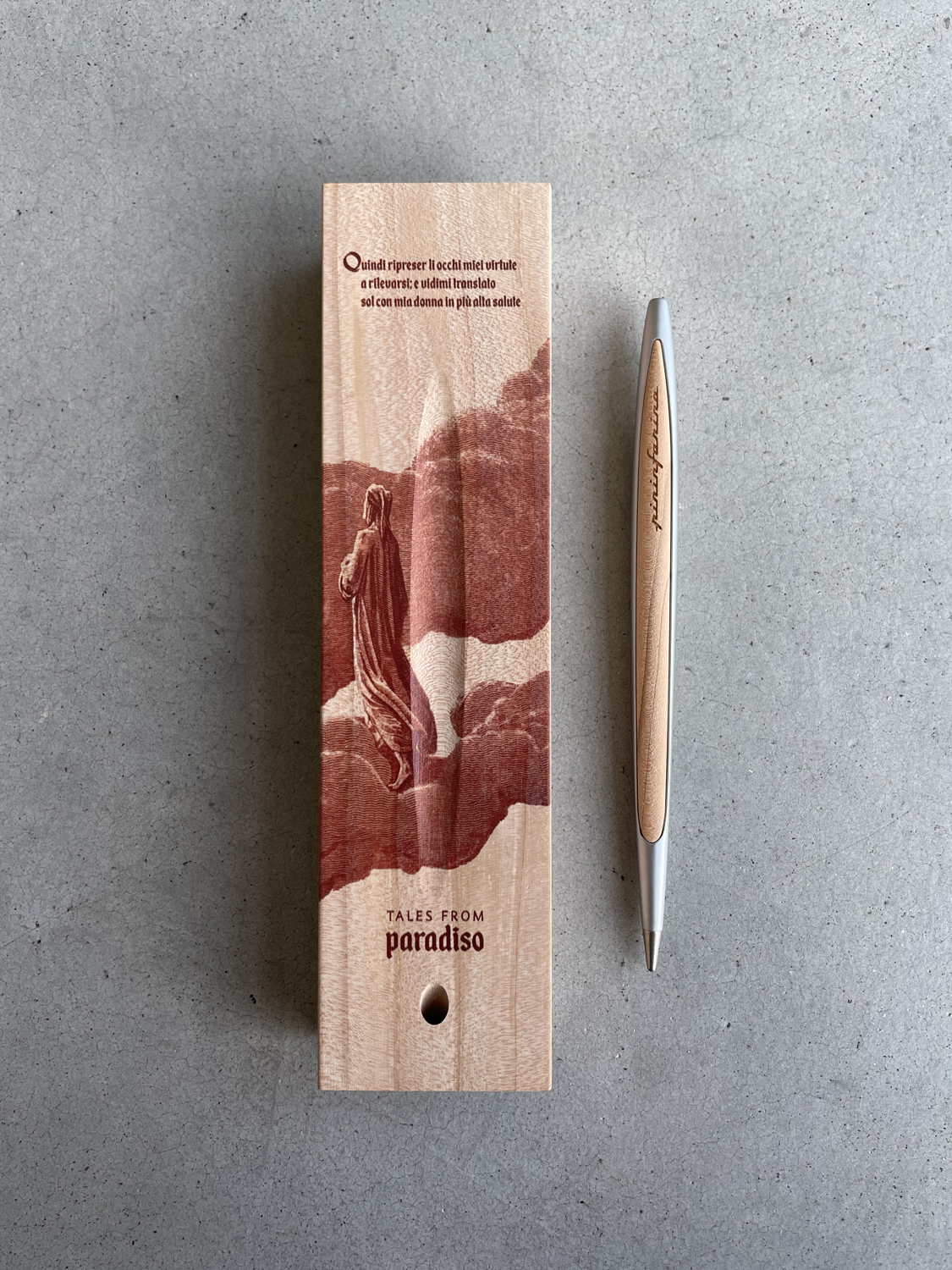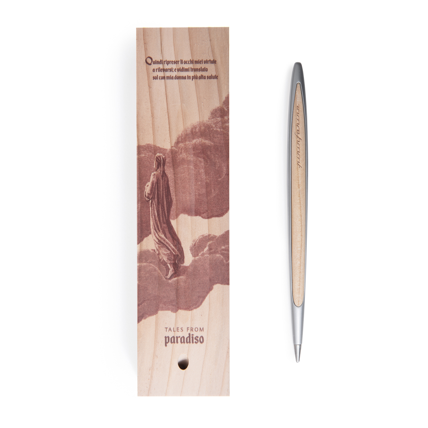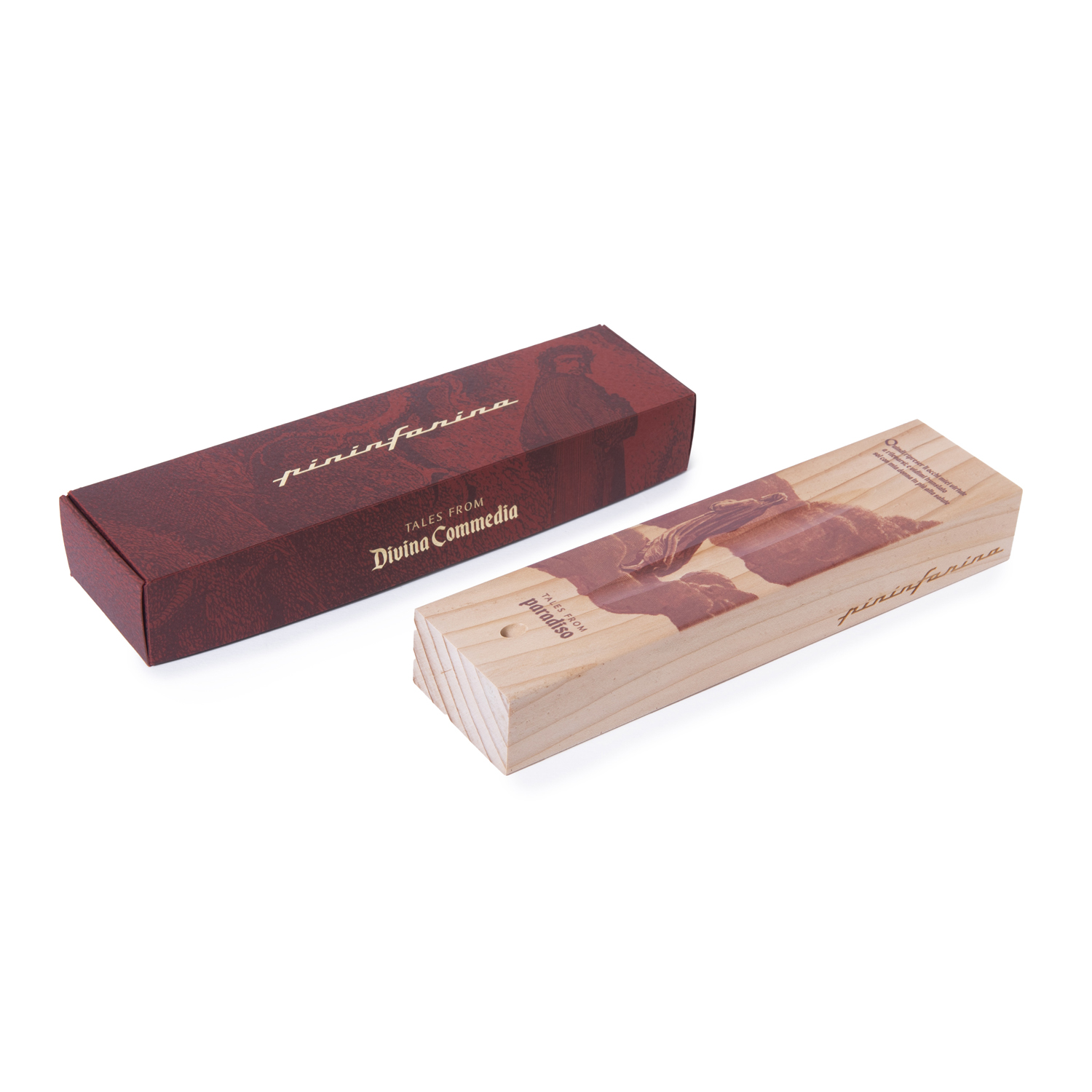 Лимитированная коллекция бренда Pininfarina CAMBIANO BOX EXCLUSIVE DANTE 700TH ANNIVERSARY в память о Данте Алигьере, приуроченная к 700-летию его смерти. На коробке из массива кедра, которая является одновременно настольной подставкой для вечной ручки Cambiano, изображен культовый портрет великого итальянского поэта, написанный мастером эпохи Возрождения Сандро Боттичелли между 1480 и 1485 годами. Именно этот портрет сделал профиль Данте узнаваемым во всем мире. Вечная ручка имеет необычный пишущий узел в виде наконечника Ethergraf, который изготовлен из сплава металлов по запатентованной технологии. Он не содержит свинец и алюминий, производится вручную итальянскими мастерами и практически не расходуется за десятилетия использования. При соприкосновении с поверхностью бумаги, происходит химическая реакция и наконечник оставляет серебристый след, который напоминает цвет графитового карандаша, но обладает большей стойкостью. Идеально пишет на каменной бумаге. Корпус ручки выполнен из алюминия с вставками из кедрового дерева. Вес ручки 39 гр, длина 16 см. Набор упакован в подарочную коробку.
