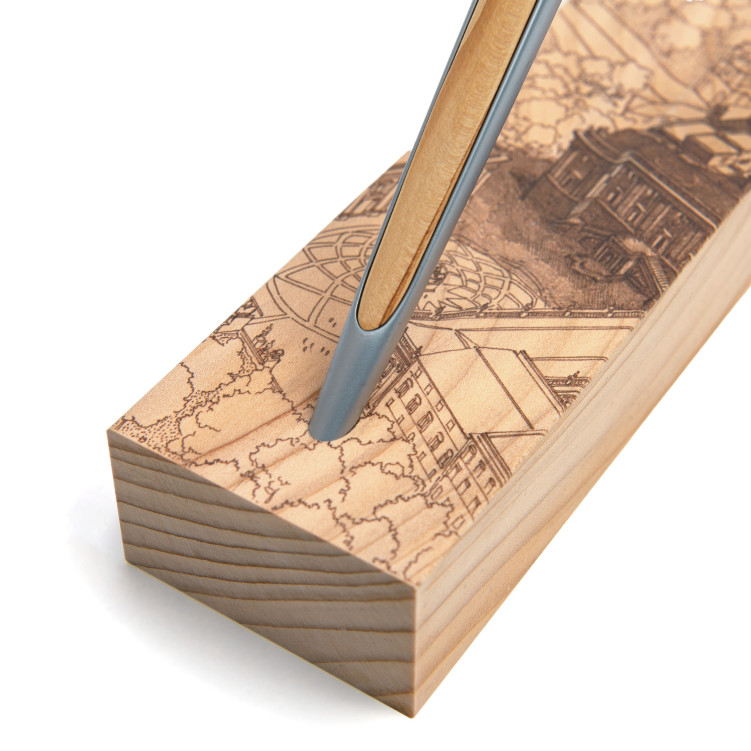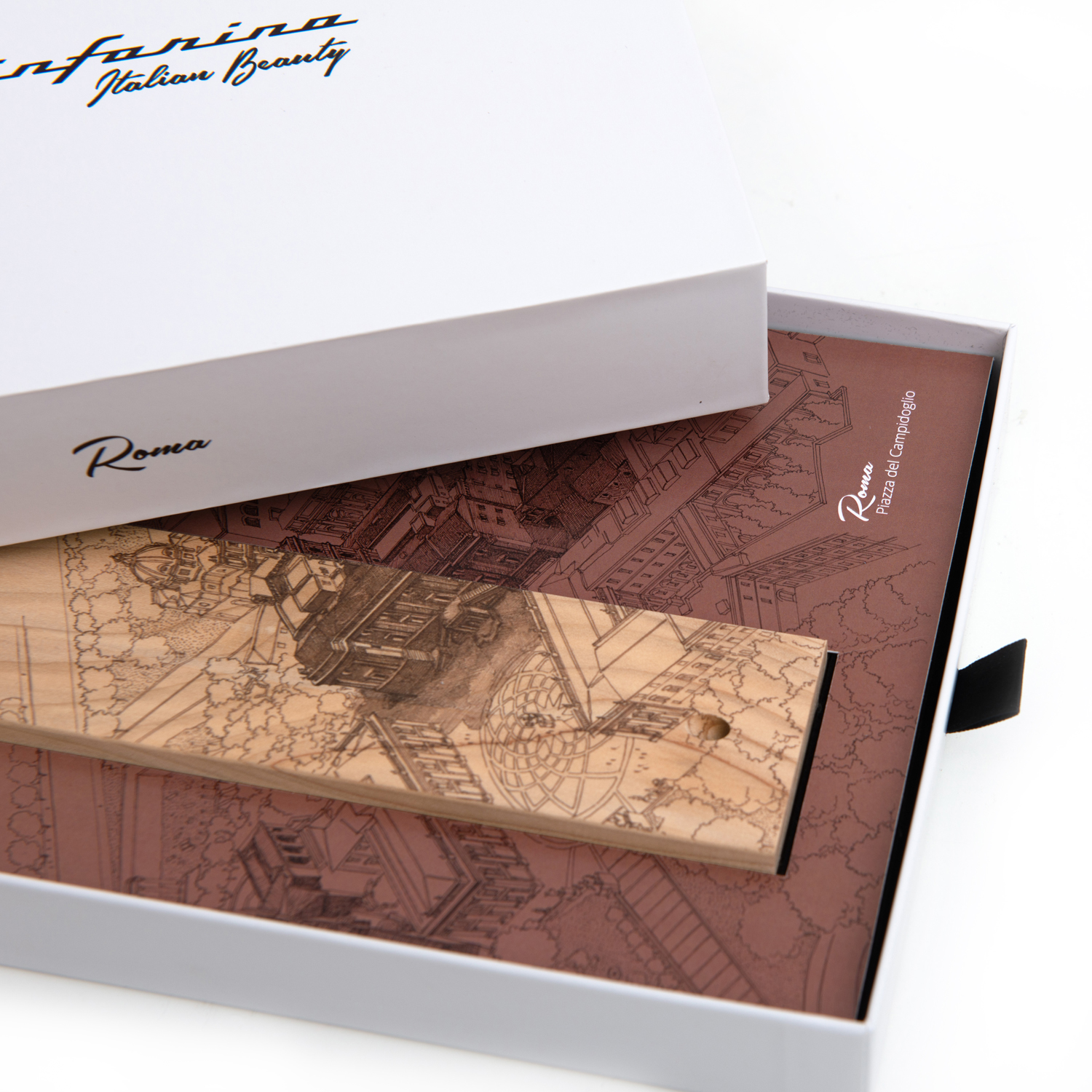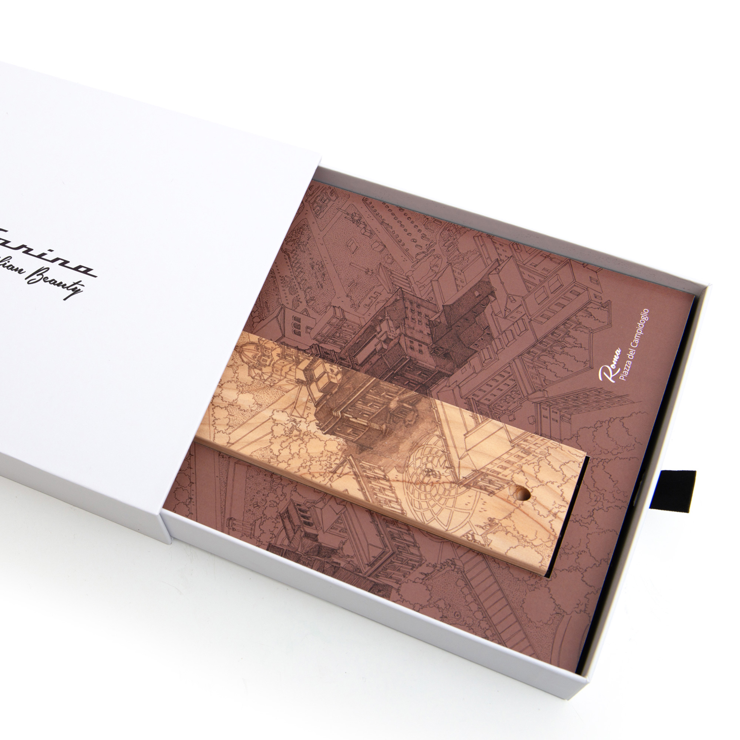 Вечная ручка Pininfarina Cambiano Рим из лимитированной коллекции дизайнеров Pininfarina в сотрудничестве с Francesco Corni Foundation, посвященной красоте Италии и представленной 8 городами. Франческо Корни - выдающийся дизайнер из Модены, посвятивший свою жизнь популяризации истории и архитектуры. Используя трехмерное перспективное видение, он изучает наиболее значимые здания каждого города, выбирает наилучшую точку обзора, чтобы подчеркнуть их особенности, и прорисовывает детали в древней технике калиграфии. Дополняет видение мастера умелое использование цветов, по одному для каждого города. Для Рима дизайнер выбрал центральной точкой площадь Piazza del Campidoglio и коричневый цвет, в результате подарочная коробка и деревянная подставка для ручки из массива кедра становятся единым произведением искусства. Ручка упаковывается в деревянную коробку, являющуюся одновременно настольной подставкой для этой вечной ручки Cambiano с необычным пишущим узлом в виде наконечника Ethergraf®, изготовленного из сплава металлов по запатентованной технологии. Он не содержит свинец и алюминий, производится вручную итальянскими мастерами и практически не расходуется за десятилетия использования. При соприкосновении с поверхностью бумаги, происходит химическая реакция и наконечник оставляет серебристый след, который напоминает цвет графитового карандаша, но обладает большей стойкостью. Идеально пишет на каменной бумаге. Корпус ручки выполнен из алюминия с вставками из дерева кедра. Вес ручки 39 гр, длина 16 см. Набор упакован в белую подарочную коробку размером 245х174х42 мм.