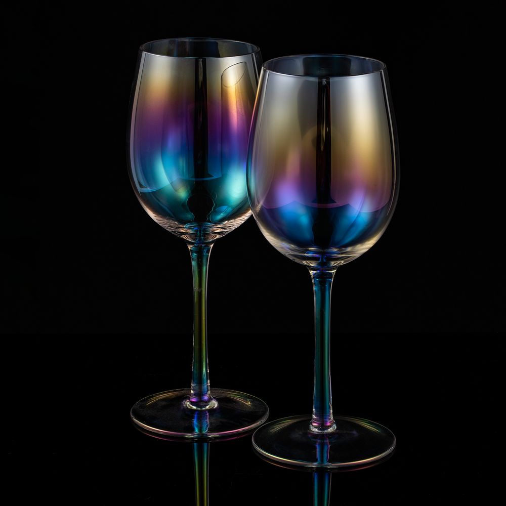 Винные бокалы с перламутровым напылением Perola привлекают внимание своим изысканным дизайном. Переливающиеся разными цветами, бокалы зачаровывают и притягивают взгляды.