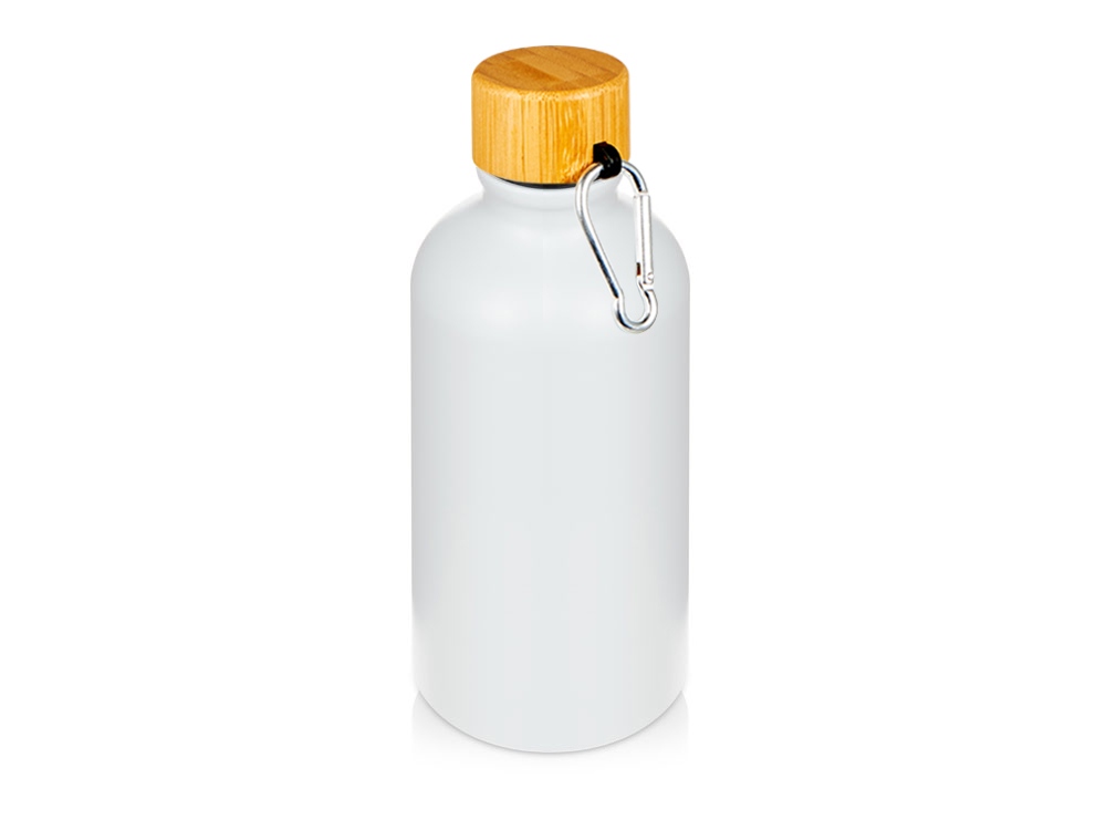 Бутылка для питья Hip с карабином. Бутылка с одинарными стенками со съемной крышкой из бамбука. Карабин не предназначен для лазанья. Объем – 400 мл. BPA Free Алюминий. В комплекте идет запасная крышка из полипропилена. Трафаретная печать круговая (1 цвет (цветные изделия)) на данный товар осуществляется бесплатно. Оплачивается только настройка оборудования в размере 4500 рублей на весь тираж.