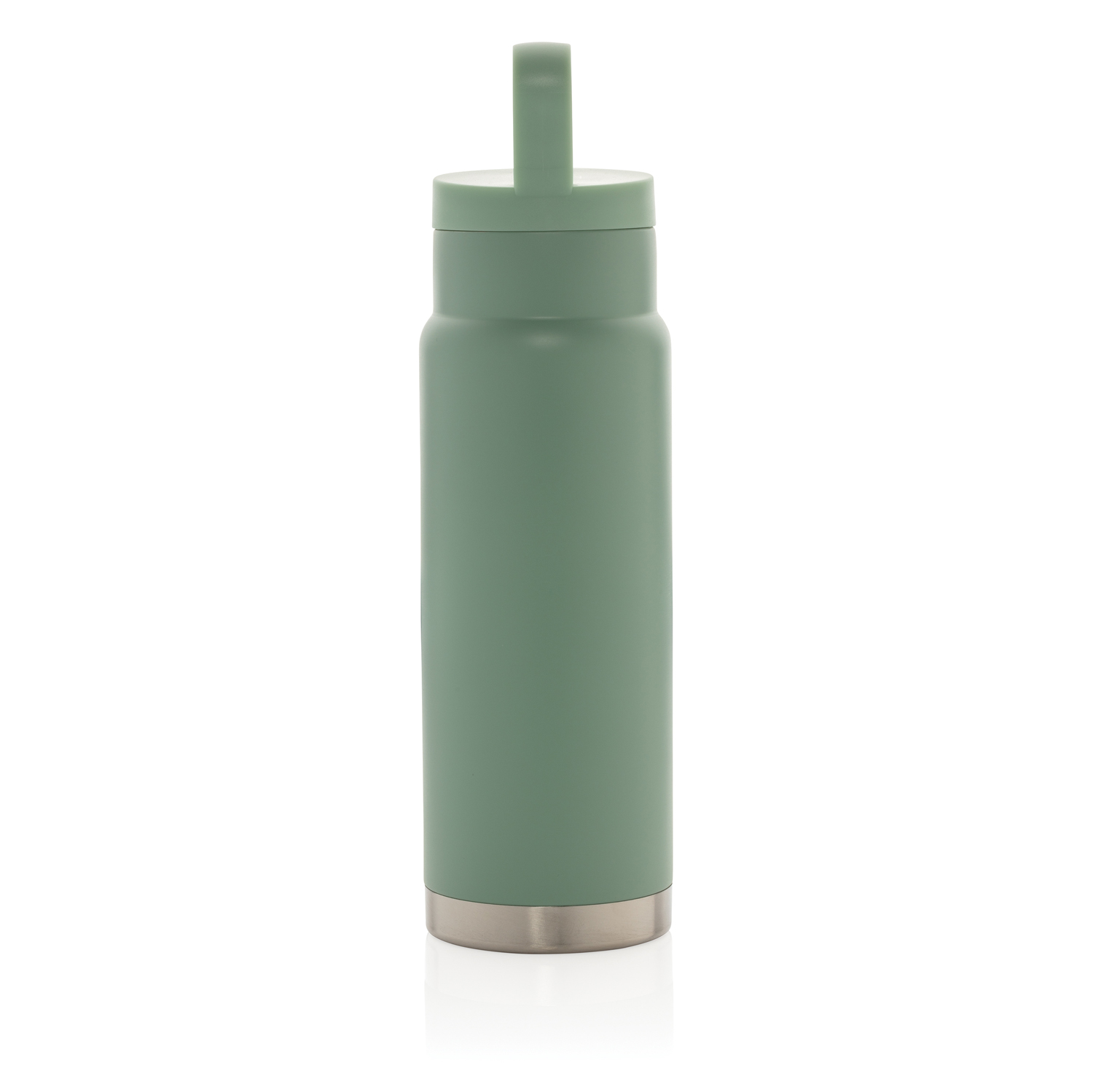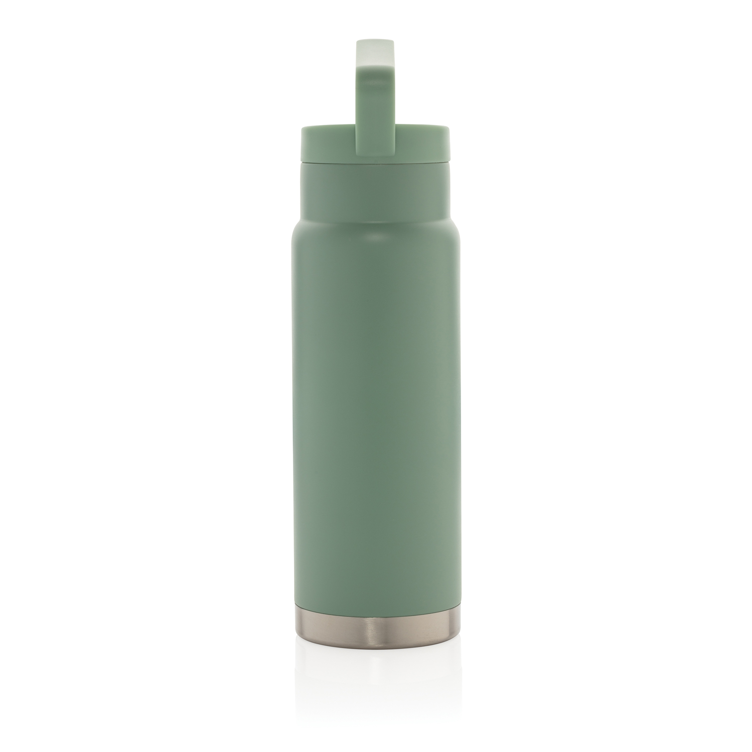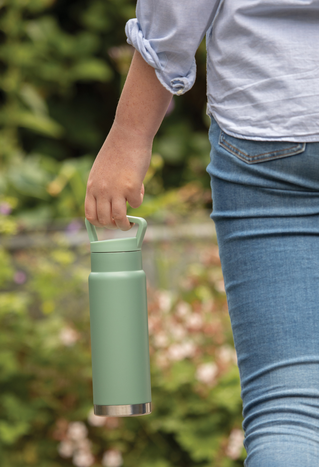 Уникальная бутылка выполнена из высококачественной нержавеющей стали и оснащена двойной изоляцией, чтобы сохранять ваши напитки холодными до 15 часов и горячими до 5 часов. При помощи ручки ее удобно носить с собой. Объем 650 мл. Не содержит BPA.