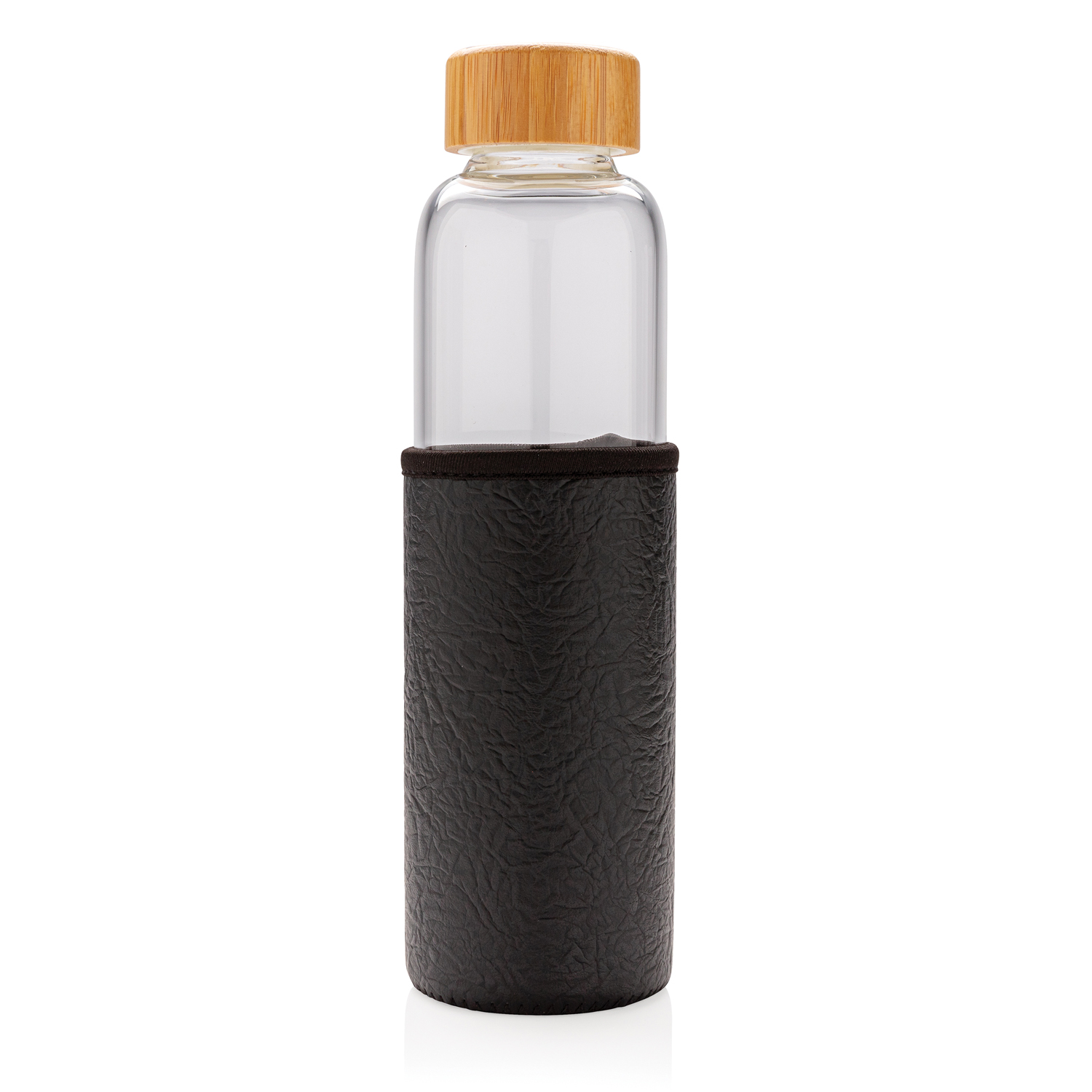 Стеклянная бутылка с текстурированным чехлом из PU идеально подойдет тем, кто не хочет пить из пластика. Стеклянная бутылка закрывается герметичной крышкой из бамбука. Широкое горлышко позволяет комфортно пользоваться бутылкой, а нескользящий чехол из PU защищает стекло от внешнего воздействия и добавляет стильный штрих. Объем 550 мл.