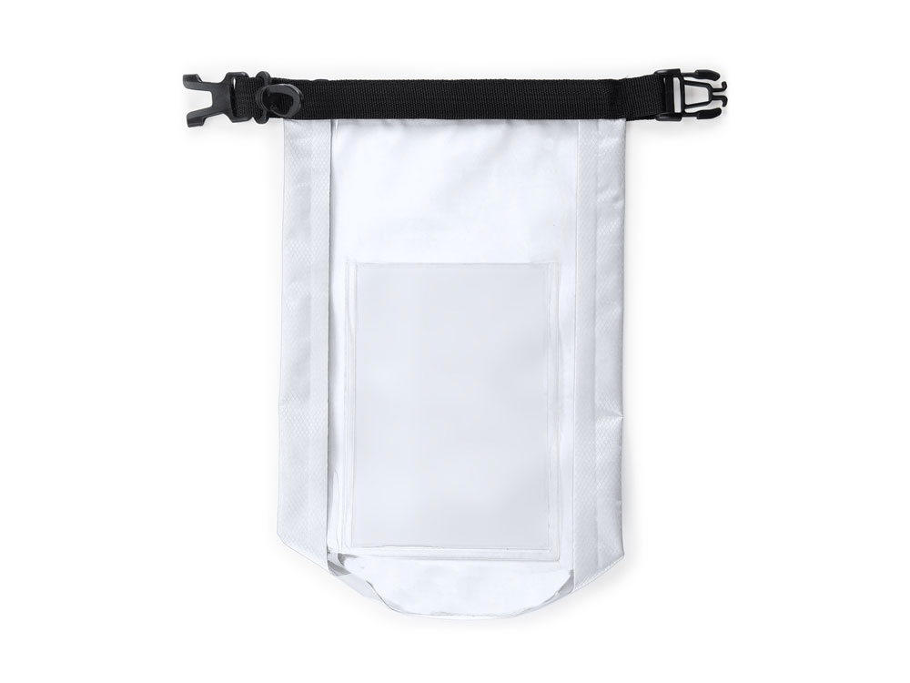 Водонепроницаемая сумка из прочного рипстопа. Практичное окошко с карманом для мобильного телефона. Водонепроницаемая система закрытия с защелкой и карабином для транспортировки. Общий объем: 3 л. Полезный объем: 2,5 л. Тампопечать (1 цвет (цветные изделия)) на данный товар осуществляется бесплатно. Оплачивается только настройка оборудования в размере 4500 рублей на весь тираж.