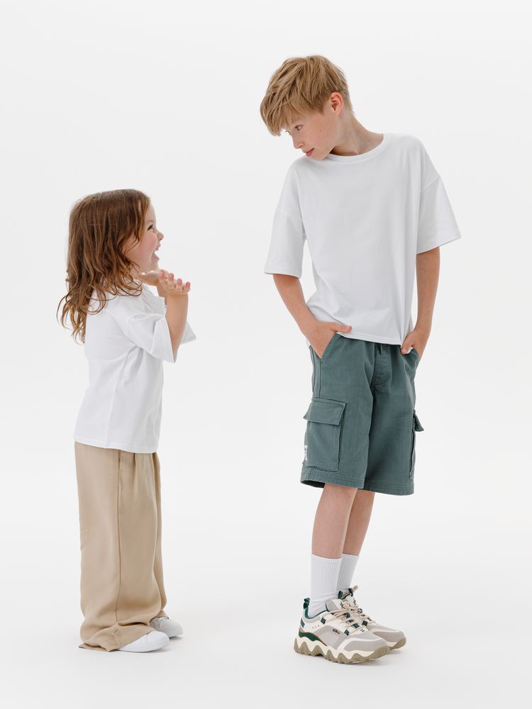 Детская футболка оверсайз из гребенного хлопка с эластаном не стесняет движений и создает модный силуэт.