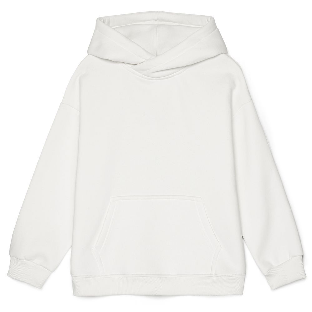 Детское худи унисекс со спущенным плечом и карманом-кенгуру.