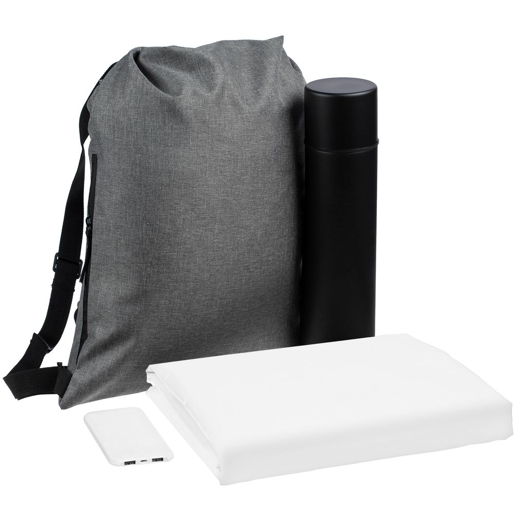 термос - нержавеющая сталь, пластик; аккумулятор - пластик, покрытие софт-тач; дождевик - полиэстер 100%, плотность 60 г/м²; таффета; рюкзак - полиэстер, 300D