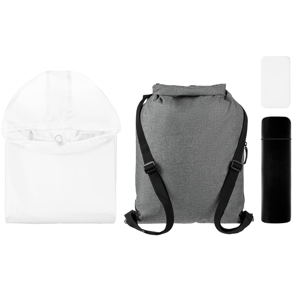 Термос с любимым горячим напитком поможет согреться, с внешним аккумулятором вы всегда будете на связи, а дождевик-анорак из прочной водозащитной ткани таффета легко защитит от любой непогоды.