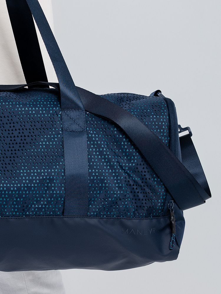 Цвет Outer Space лег в основу коллекции сумок Triangel, позволяя создать модное монохромное сочетание с изделиями Manevr темно-синего цвета. Изделия изготовлены из шелковистого полиэстера, в отделке использована лазерная перфорация паттерна.