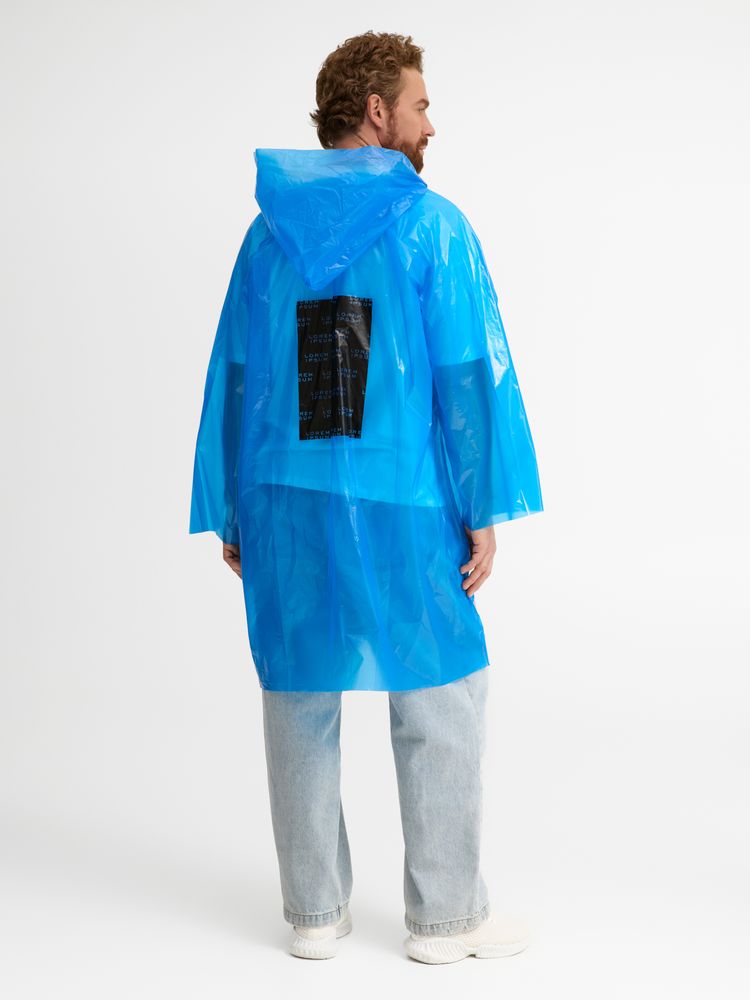 Дождевик-плащ с капюшоном и длинными рукавами из полиэтилена высокого давления (ПВД).
