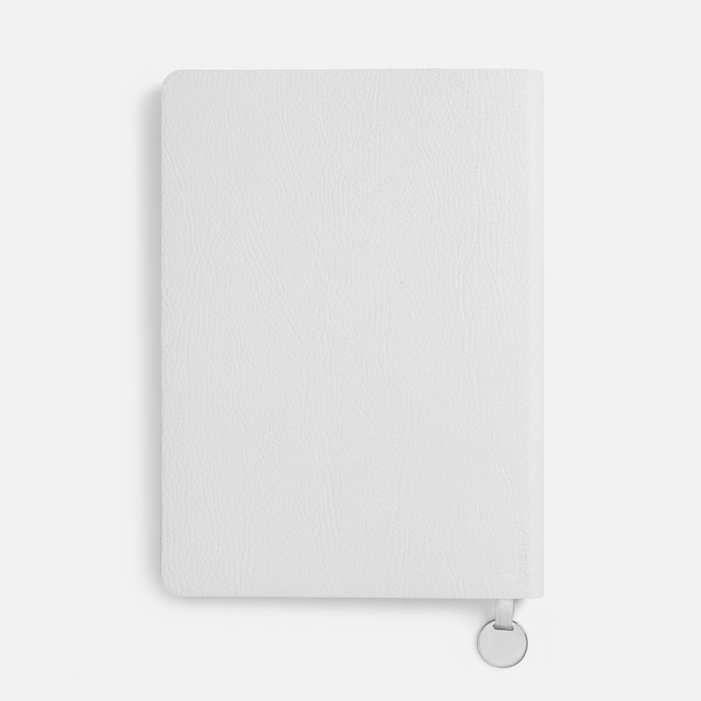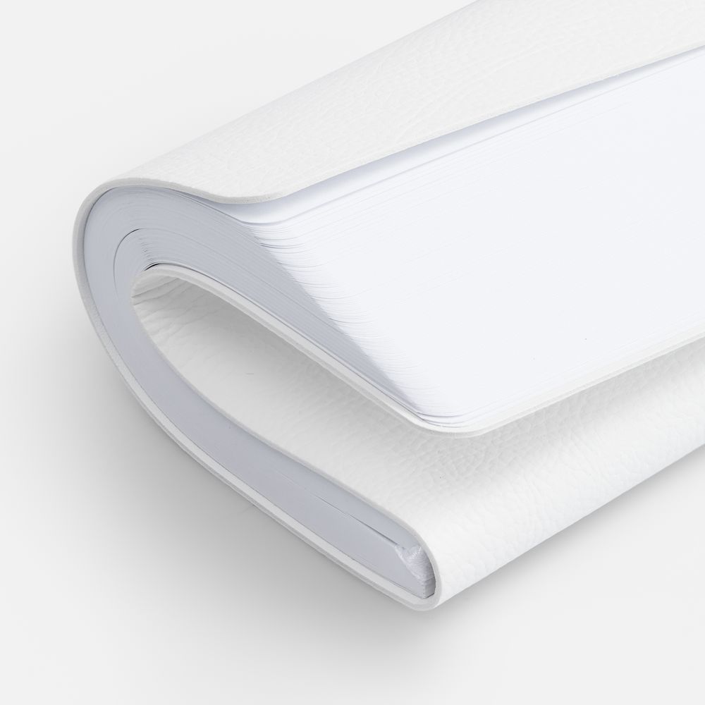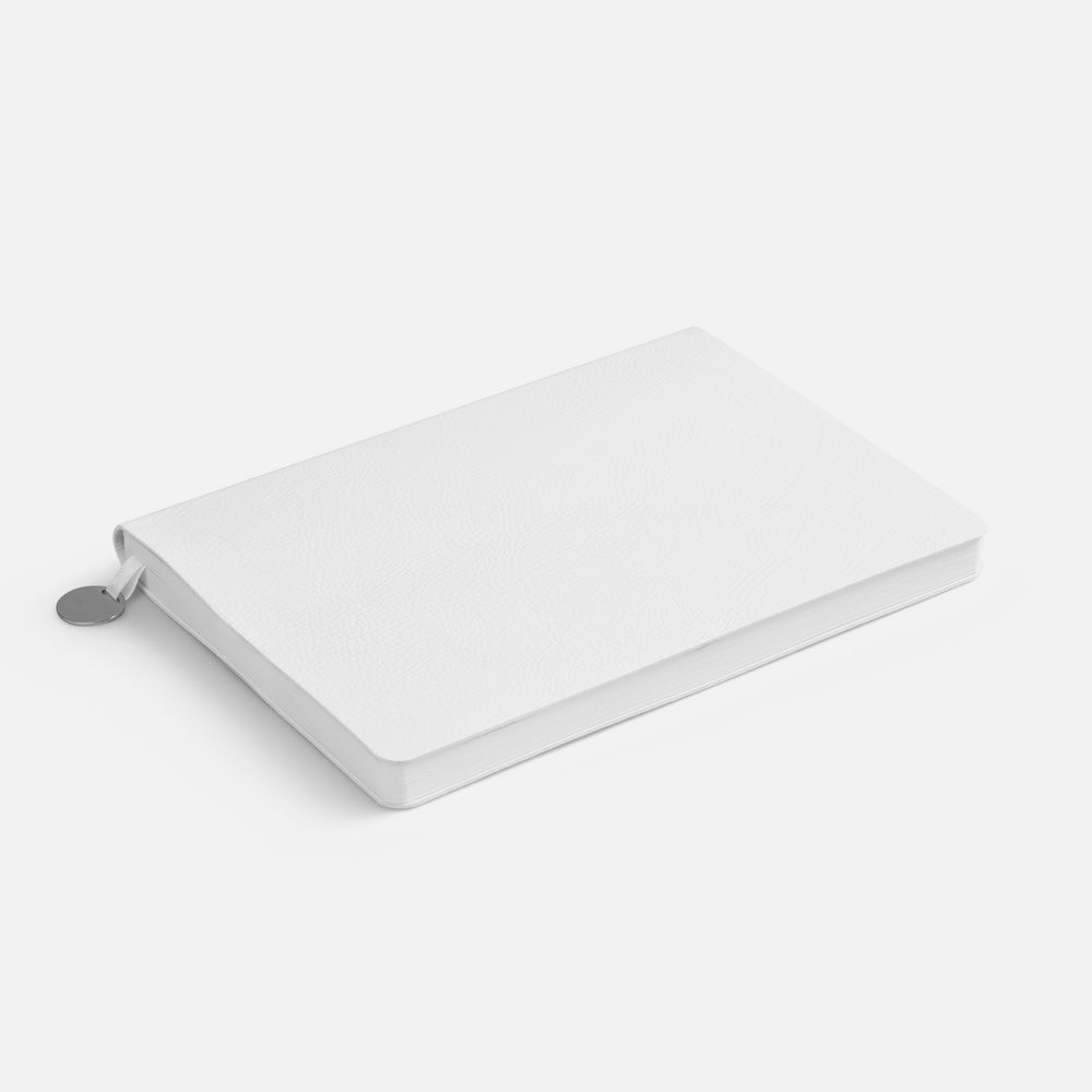 Ежедневник с гибкой обложкой, выполнен из материала Prestige, белый BB, дополнен ляссе в цвет обложки с металлическим шильдом.