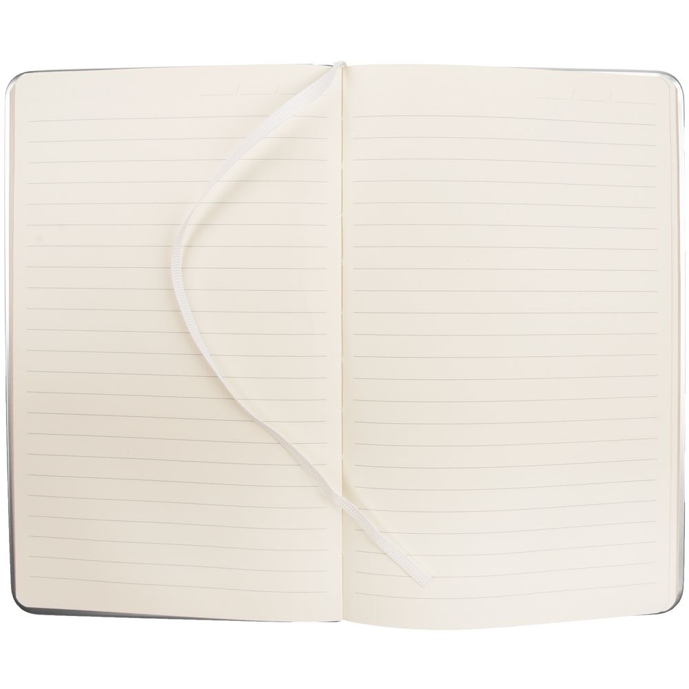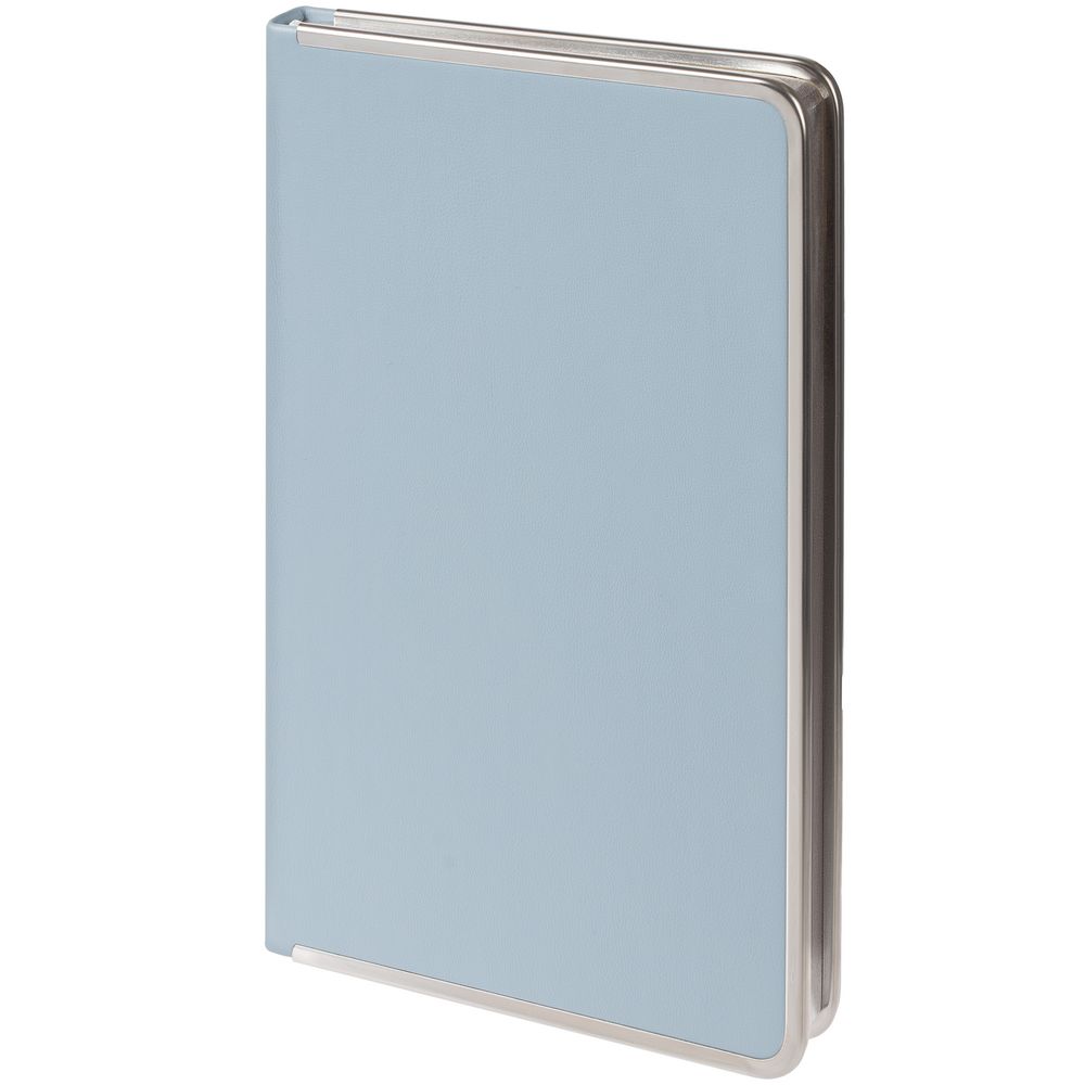 Изящный ежедневник с зауженным блоком и стильными деталями — металлической окантовкой на обложке и металлизированным обрезом.