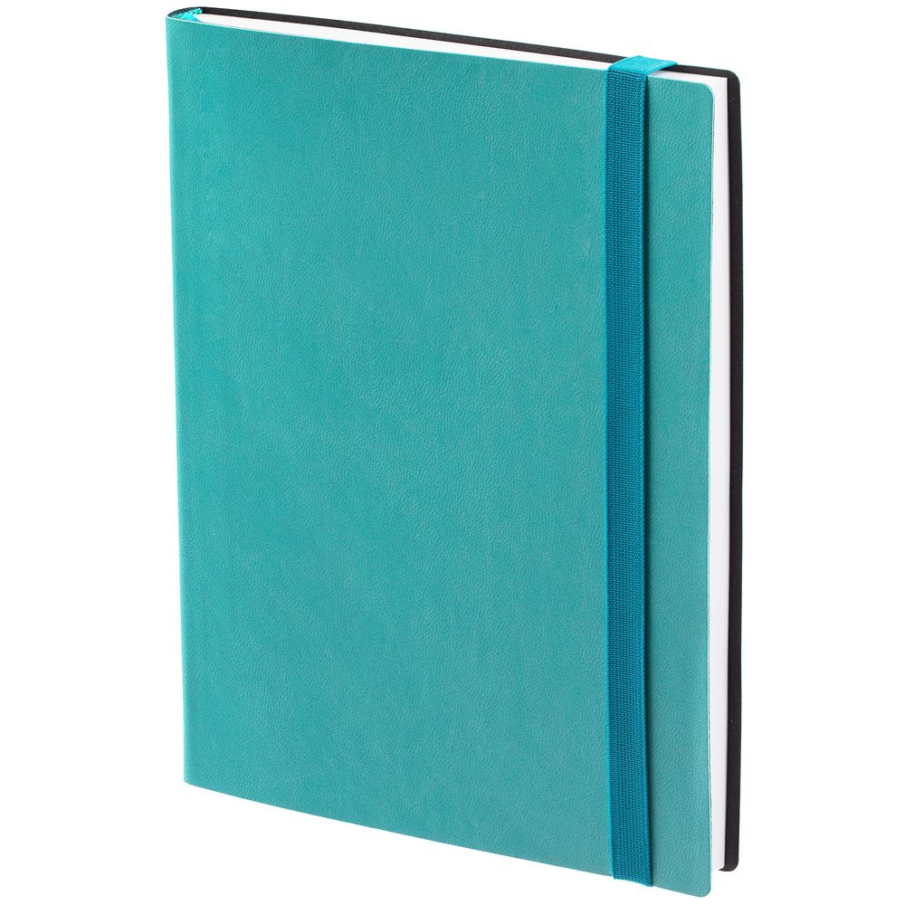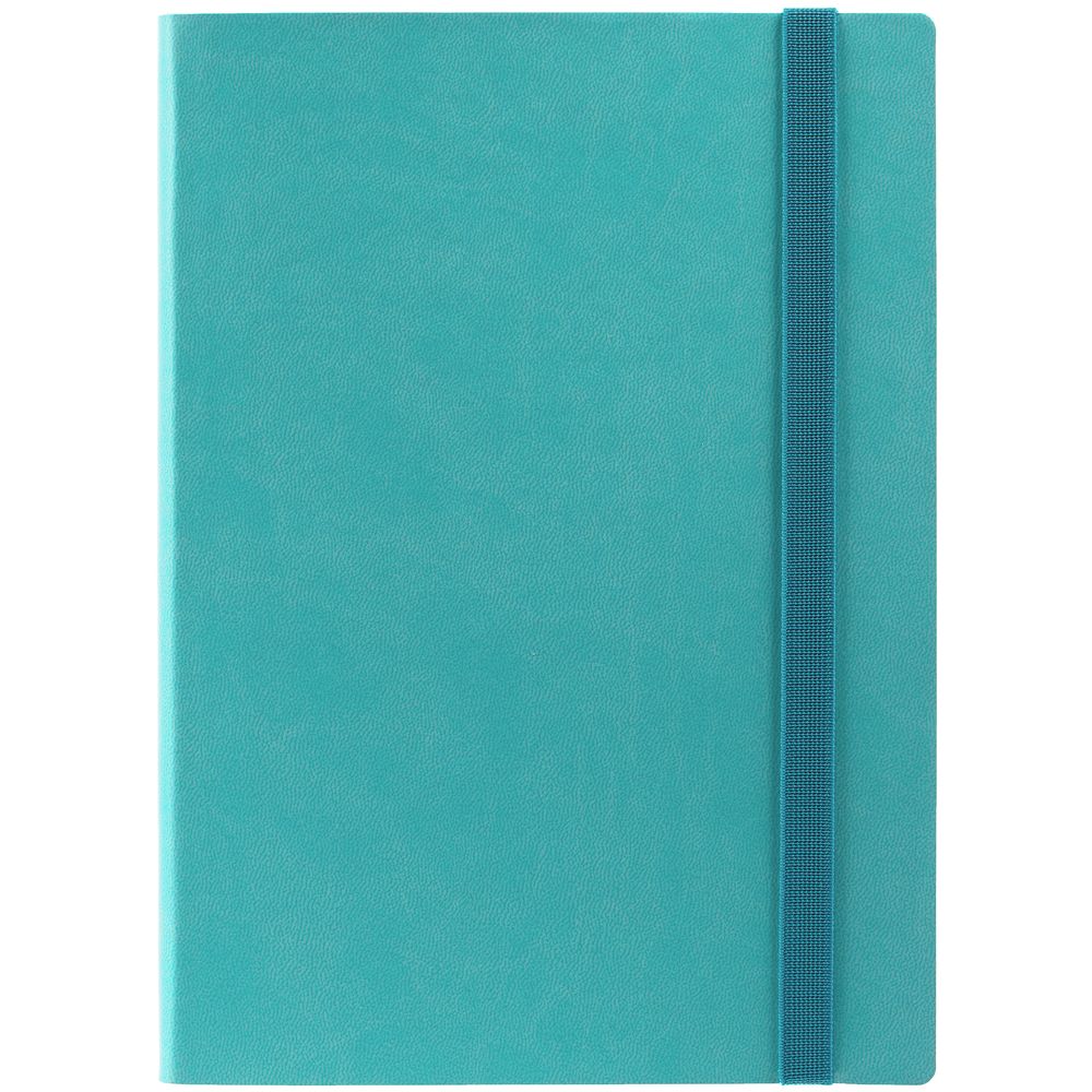 Ежедневник с гибкой обложкой выполнен из материала Latte, морская волна II, и дополнен резинкой шириной 1 см, капталом и ляссе в цвет обложки.
