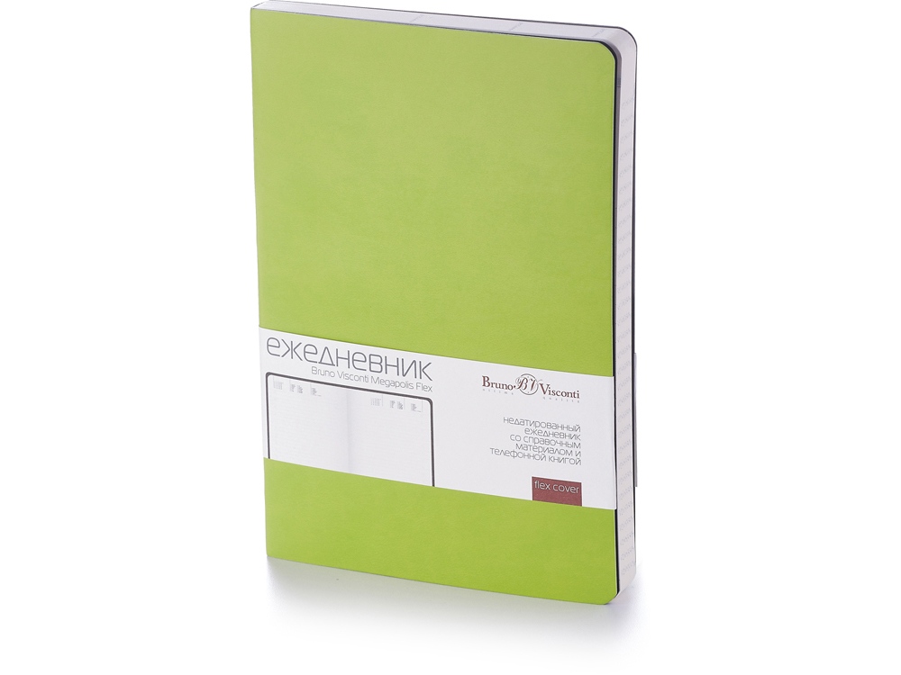 Недатированный ежедневник Megapolis Flex от бренда Bruno Visconti - это качественный корпоративный подарок по выгодной цене, произведенный специально под персонализацию. Представлен в универсальном формате А5 и состоит из 272 страниц. Элегантная закругленная flex обложка из гладкого кожзама имеет гибкую конструкцию и приятна на ощупь. А интегральный переплет позволяет сэкономить место в деловой сумке или портфеле – ежедневник можно просто свернуть в трубку или согнуть пополам.