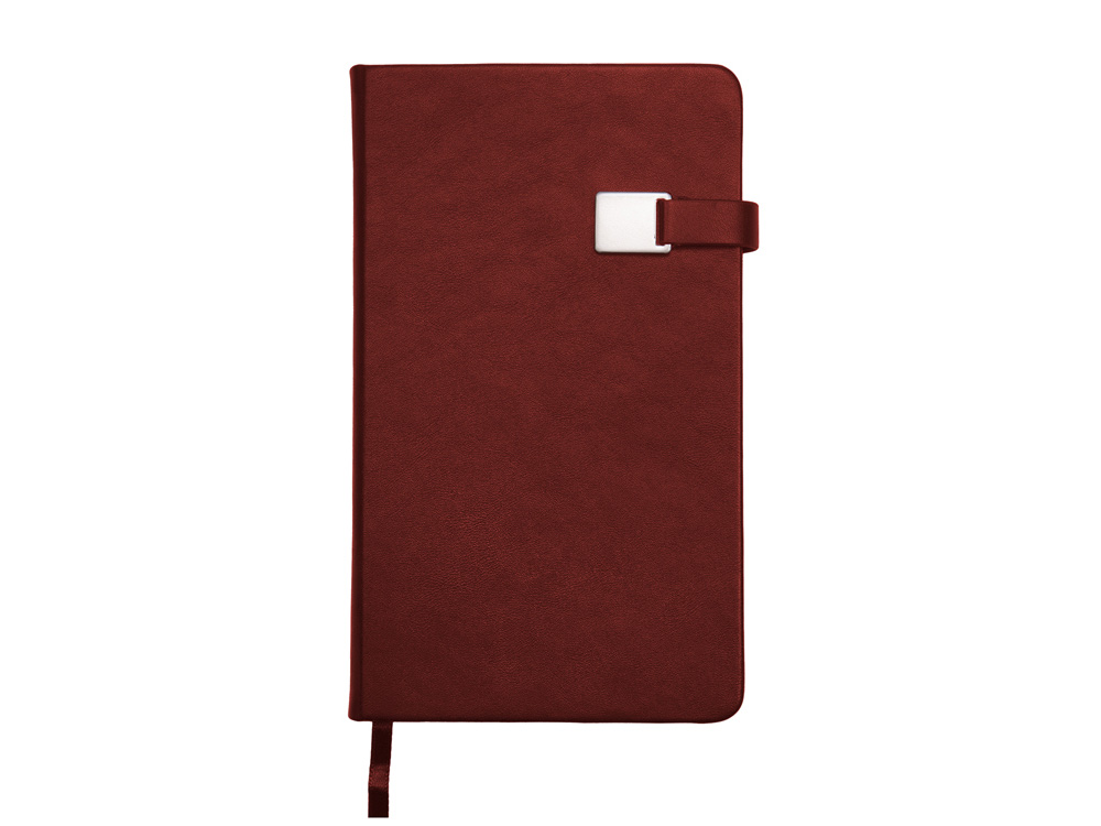 Твердую обложку из высококачественной искусственной кожи дополняет металлический хлястик на магните. Ляссе в цвет обложки позволяет быстро найти нужную страницу. Блок в 272 страницы произведен из бежевой бумаги плотностью 70 г/кв.м и имеет раздел справочной информации на 19 страницах. Для удобства навигации все углы блока перфорированы, имеют скруглённую форму. Тиснение (Блинт) на данный товар осуществляется бесплатно. Оплачивается только настройка оборудования в размере 8700 рублей на весь тираж.