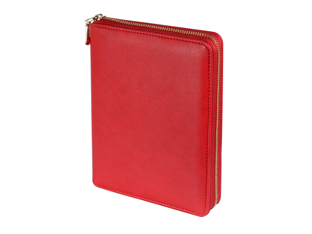 Великолепный ежедневник из качественной искусственной кожи, который заменит вам портмоне и органайзер. В ежедневнике предусмотрены карманы для карточек, сменный блок на кольцах. Внутри достаточно места для ручки и даже для мобильного телефона. Сам ежедневник закрывается на молнию. Его удобно брать с собой и на переговоры, и на деловой обед. Блок отпечатан в 2 цвета на бежевой бумаге плотностью 70 г/м2. Тиснение (Блинт) на данный товар осуществляется бесплатно. Оплачивается только настройка оборудования в размере 8700 рублей на весь тираж.