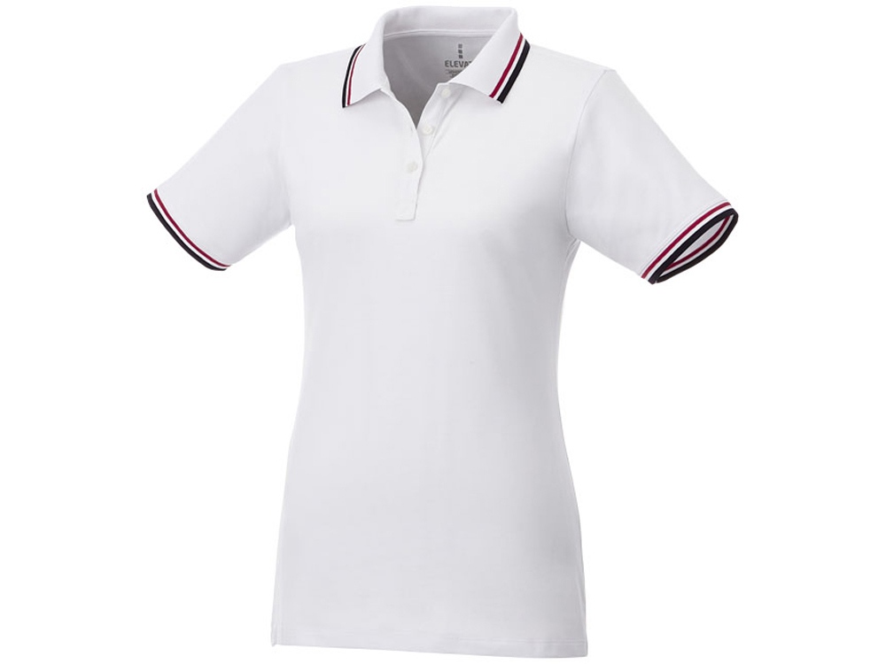 Женская футболка поло Fairfield с коротким рукавом с проклейкой. Воротник гладкой вязкой в рубчик. Манжеты гладкой вязкой в рубчик. Контрастные окантовки. Планка с тремя пуговицами (мужская модель).Гравированные пуговицы в цвет изделия. Комфортный ярлык-трансфер на изделии. Трикотажное пике, 100% хлопок. 180 г/м². Трафаретная печать (1 цвет (белые изделия)) на данный товар осуществляется бесплатно. Оплачивается только настройка оборудования в размере 7300 рублей на весь тираж.