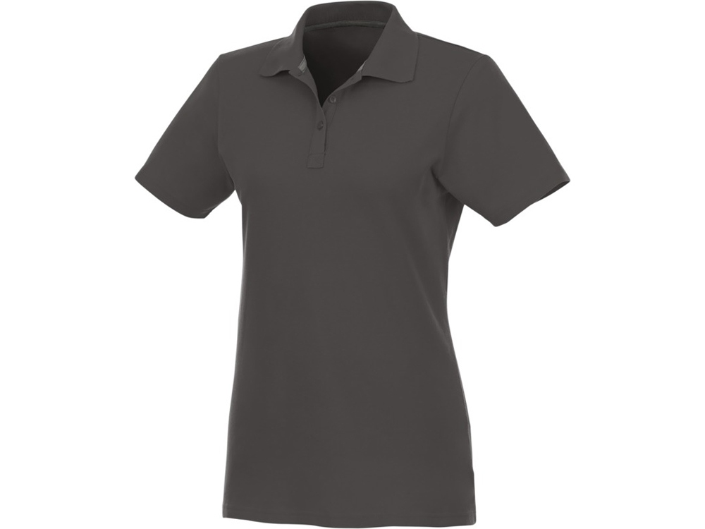 Женское поло Helios с коротким рукавом. Женская модель с разрезами по бокам. Отрезной-отрывной ярлык для комфорта. Воротник гладкой вязкой в рубчик. Планка с тремя пуговицами. Двойная строчка на воротнике и внизу изделия. Пуговицы в цвет изделия. Полоска на горловине в контрастном цвете. Трикотаж Piqué, 100 % хлопок. 180 г/м². Трафаретная печать (1 цвет (цветные изделия)) на данный товар осуществляется бесплатно. Оплачивается только настройка оборудования в размере 9100 рублей на весь тираж.