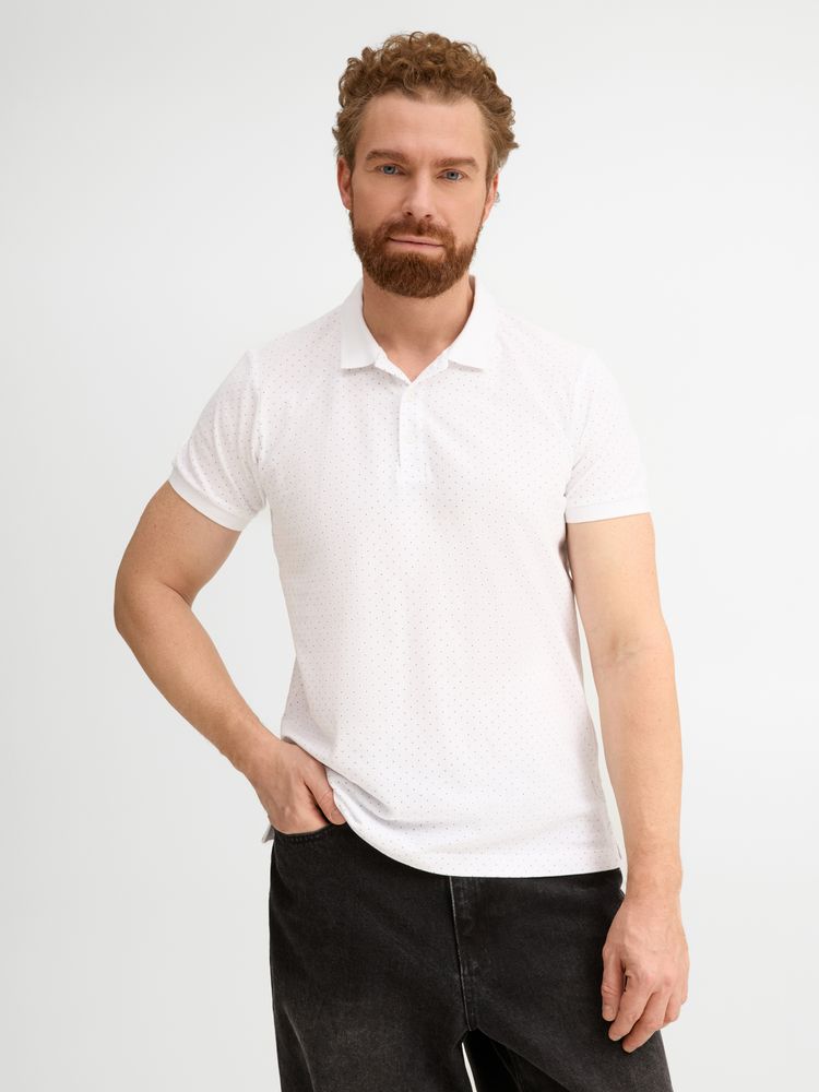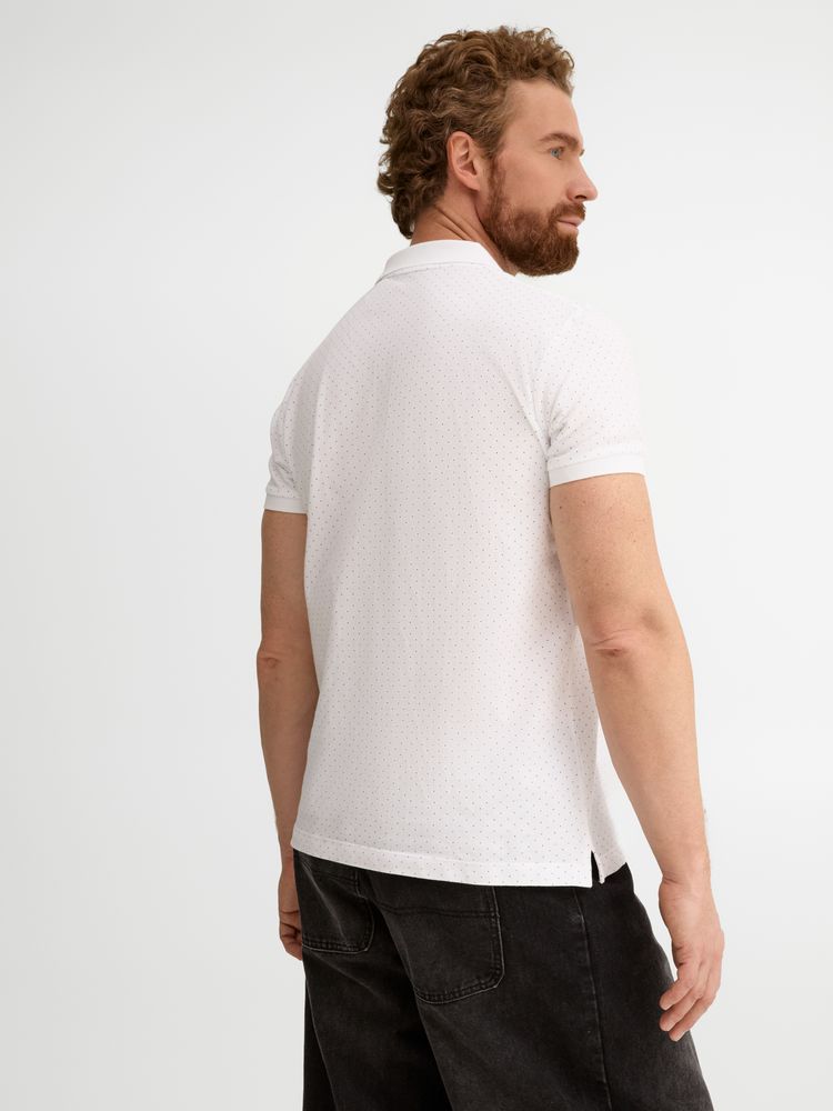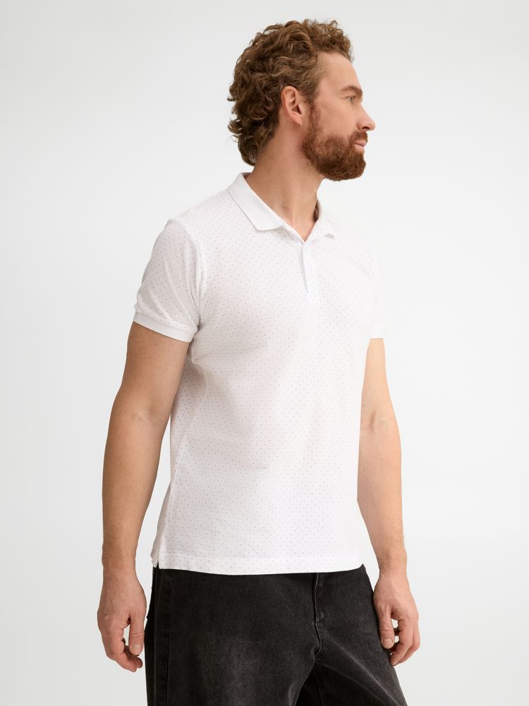Рубашка поло приталенного силуэта с рисунком в точку. Лейбл производителя в боковом шве изнутри, в шве горловины - только бирка с размером, что позволяет вам нанести свой логотип.