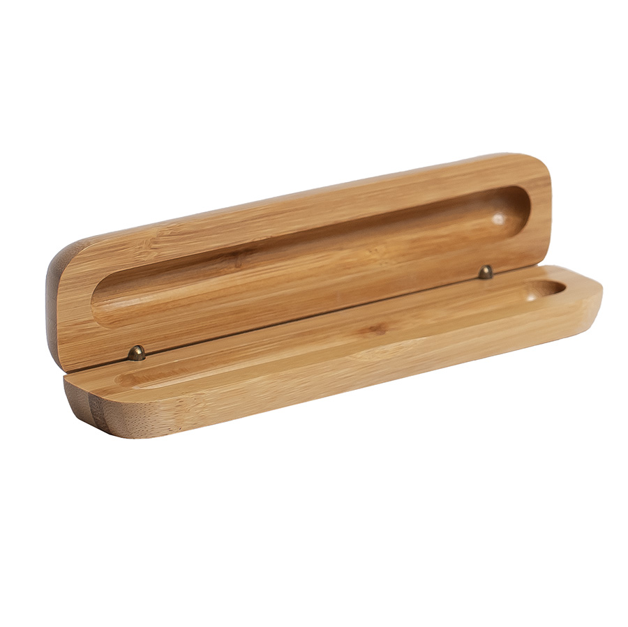 Футляр для одной ручки SOLID, бежевый, бамбук, металл