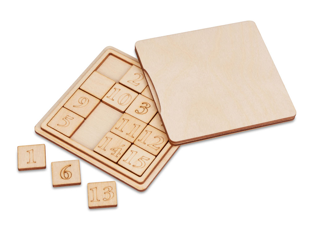 Задача игрока - выставить все цифры в правильном порядке от 1 до 15. Поле из берёзовой фанеры вмещает в себя 15 квадратов с цифрами и одно пустое место для перемещения цифр.