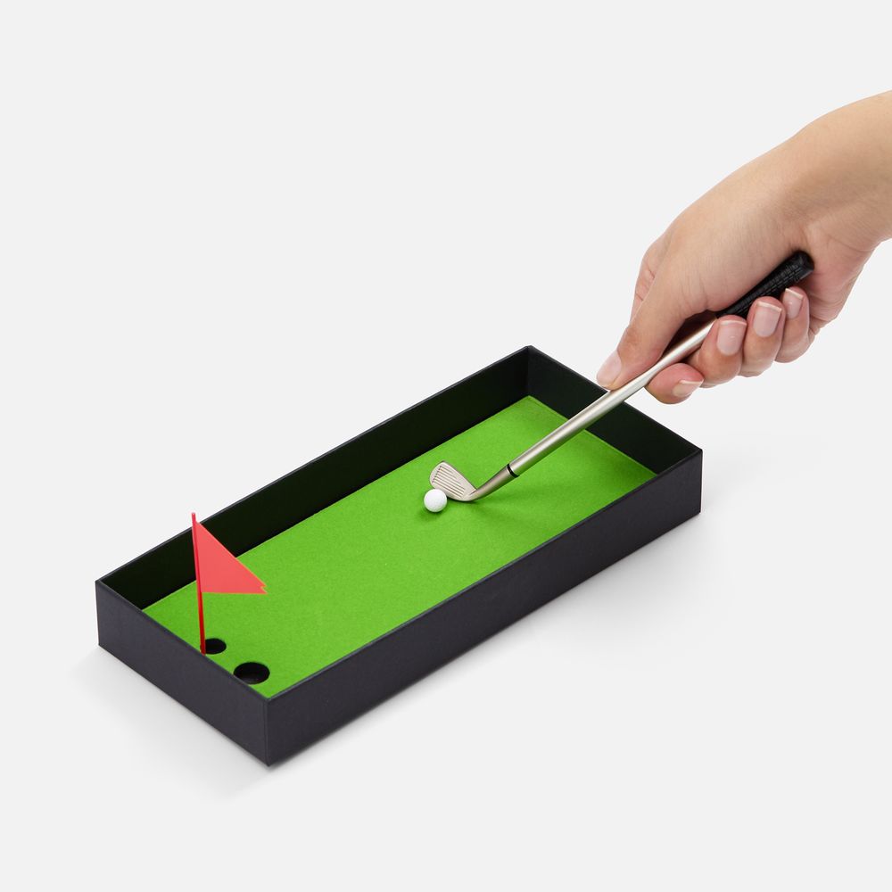 В комплект входят 3 клюшки, 2 мячика для гольфа, флажок и подарочная коробка, крышка которой служит полем для гольфа. Цель игры — забить мяч в лунку, используя специальные клюшки. Игроки по очереди делают удары, стараясь попасть в цель. Чем меньше ударов потребуется, тем больше очков зарабатывает участник.