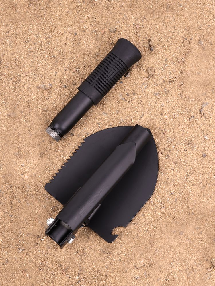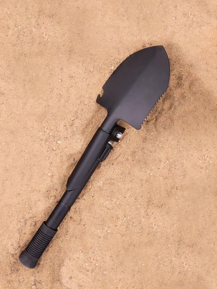 Компактная складная лопата с резиновой рукояткой — многофункциональный инструмент, который понравится автомобилистам, дачникам и туристам. Заменит целых 5 предметов: лопату, мотыгу, кирку, пилу, открывашку.