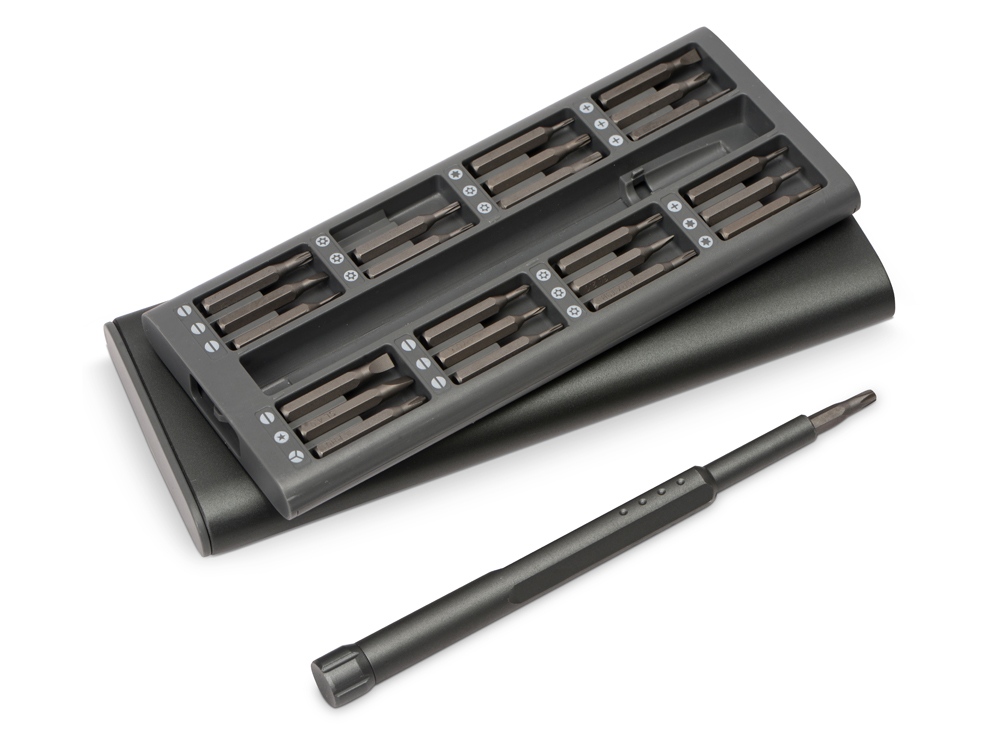 Набор из 24 насадок в металлическом кейсе. Насадки изготовлены из долговечной стали S2, твердость HRC 58-6. Включает наиболее распространенные и востребованные комплектующие для ремонта мобильных телефонов, планшетов, ноутбуков, игровых приставок и других электронных устройств. Гравировка (оптоволоконный лазер) (Без чернения) на данный товар осуществляется бесплатно. Оплачивается только настройка оборудования в размере 2700 рублей на весь тираж.