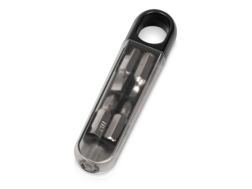 Набор отверток состоит из 4 бит (две крестовые, две поперечные разного размера), которые подсоединяются к ручке-кейсу. Благодаря прозрачной крышке все биты видны, даже когда кейс закрыт, что помогает держать их количество под контролем.