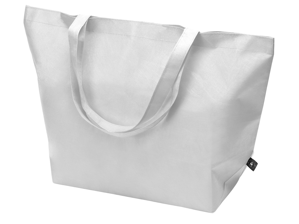 Очень вместительная сумка благодаря наличию донной складки. Произведена из переработанного пластика. Трафаретная печать (1 цвет (цветные изделия)) на данный товар осуществляется бесплатно. Оплачивается только настройка оборудования в размере 9100 рублей на весь тираж.
