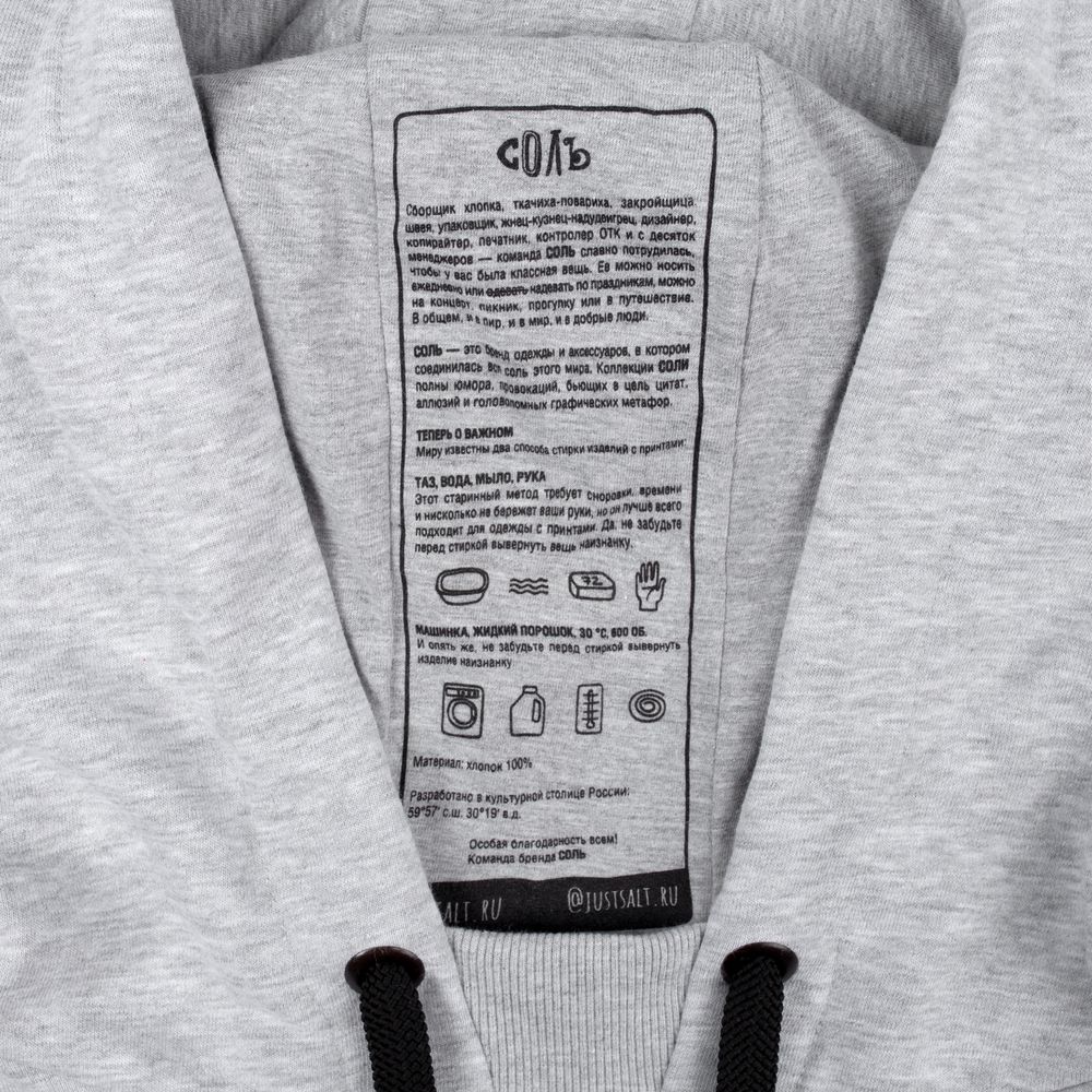 Худи оверсайз «Чистая соль», серый меланж