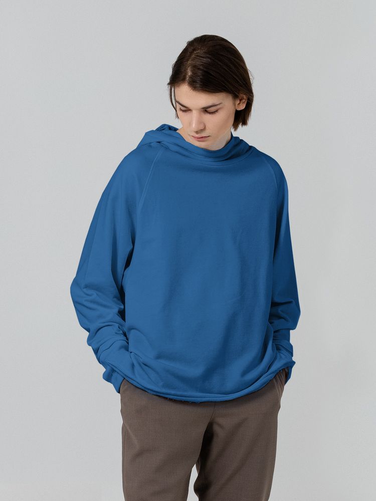 Худи унисекс свободного кроя с рукавами реглан. Внутренняя сторона без начеса.