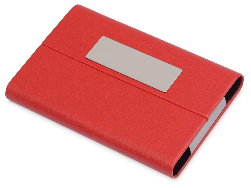 Компактная и легкая визитница выполнена в сочных цветах. Логотип можно нанести на металлическом шильде или на поверхности из искусственной кожи. Вмещает примерно 20 визиток. Гравировка (оптоволоконный лазер) (Без чернения) на данный товар осуществляется бесплатно. Оплачивается только настройка оборудования в размере 2700 рублей на весь тираж.