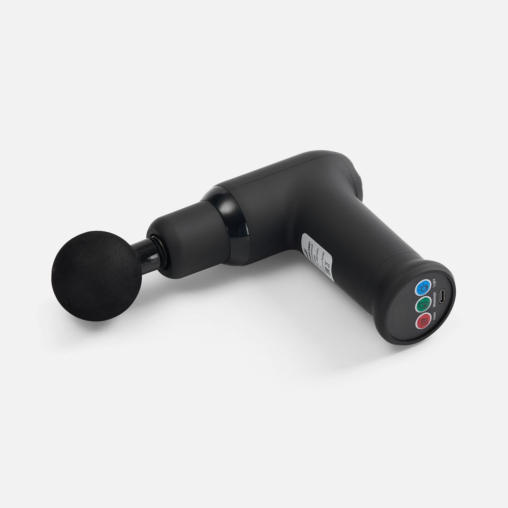 Конструкция массажера выполнена в форме мини-пистолета с тактильно приятным матовыми покрытием и эргономичной ручкой: его удобно держать и просто использовать благодаря кнопочной системе управления.
