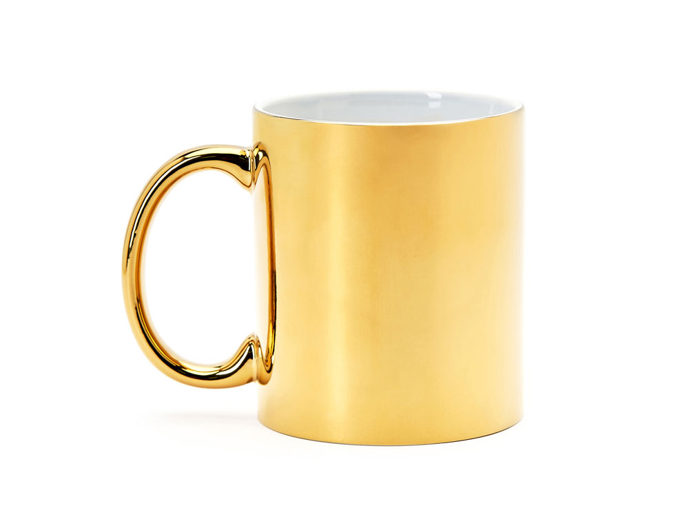 Керамическая кружка объемом 350 мл с глянцевым покрытием. Специально для лазерной гравировки. Доступна в серебряном и золотом цвете.