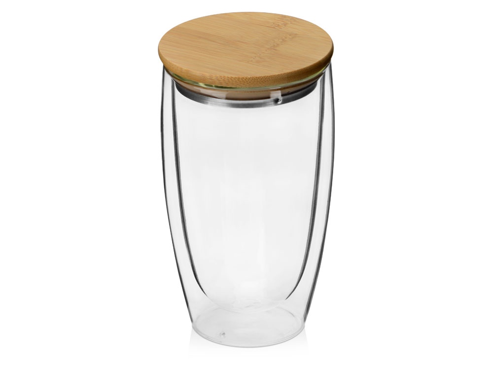 Стакан с двойными стенками и бамбуковой крышкой Batur